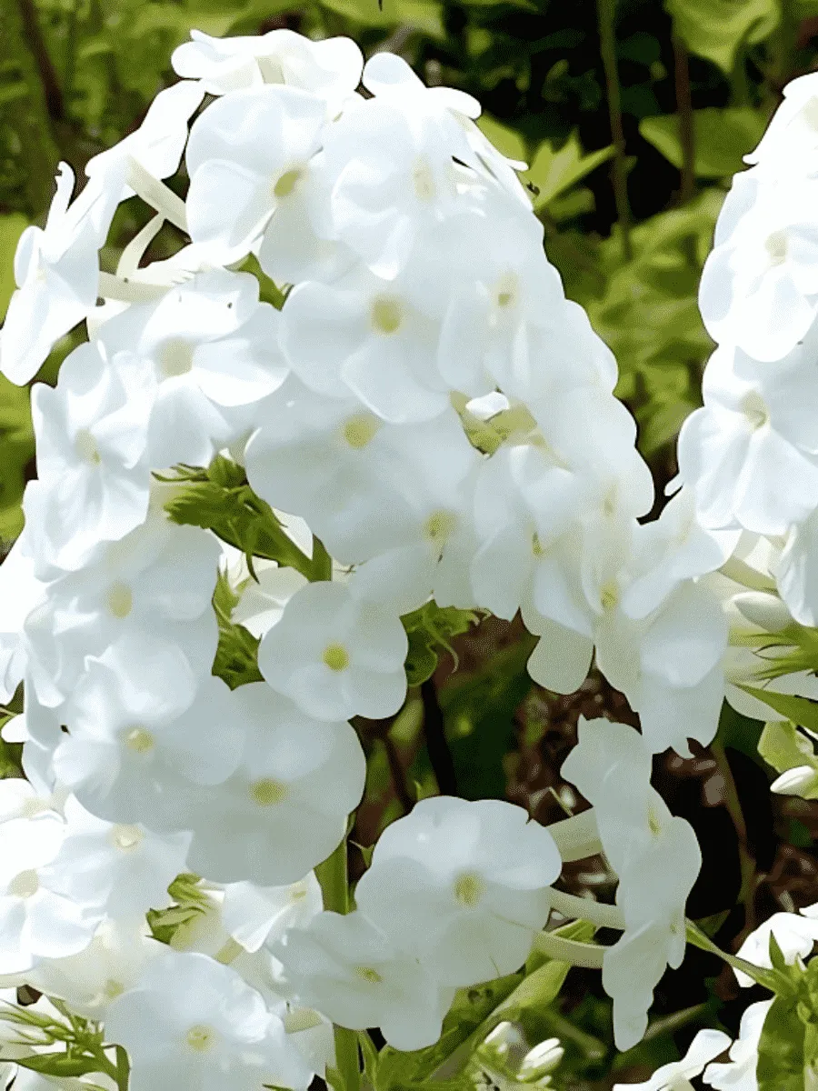 Флокс метельчатый сорта *White Admiral* пленяет взор своей изысканной белоснежной красотой, представляя собой пышный куст высотой до метра с прямостоячими крепкими стеблями, покрытыми нежной листвой насыщенного зелёного цвета. Листья продолговато-ланцетные, гладкие, слегка блестящие, расположенные супротивно вдоль всего стебля, создавая гармоничную композицию зелени и цветов. Цветки собраны в крупные густые соцветия-метёлки, достигающие диаметра около двадцати сантиметров, состоящие из множества мелких трубчатых цветков идеальной формы с пятью лепестками, словно вырезанными искусным мастером. Белоснежная окраска цветков подчёркивает чистоту и благородство растения, особенно эффектно выделяя его среди ярких красок летнего сада. Период цветения продолжительный, начинается в июне и длится вплоть до конца августа, наполняя пространство вокруг ароматом свежести и лёгкости. Растёт быстро, легко размножается черенкованием и делением куста, прекрасно адаптируется к различным условиям выращивания, предпочитая солнечные места и плодородные почвы.