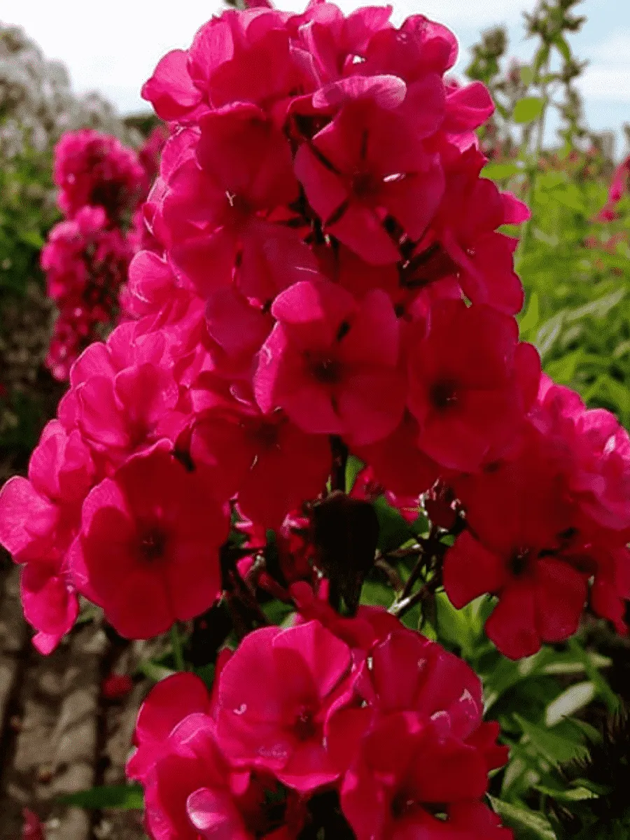 Флокс метельчатый сорта *Younique Red* пленяет взор роскошной кроной густых темно-зеленых листьев овальной формы с легким блеском, словно покрытых тонким слоем воскового сияния. Его побеги устремляются вверх стройными колоннами высотой до полутора метров, создавая пышную пирамидальную композицию. Цветки собраны в крупные плотные соцветия-метёлки диаметром около двадцати сантиметров, состоящие из множества трубчатых цветков насыщенного рубинового оттенка, переливающихся глубокими бархатисто-красными полутонами. Аромат цветов тонкий, едва уловимый, придающий саду особую атмосферу изысканности и утончённости. Период цветения продолжительный, начинается в июне и длится вплоть до сентября, украшая сад яркими красками даже в пасмурные дни. Растение неприхотливо, предпочитает солнечные места и плодородные почвы, легко размножается черенкованием и делением куста, быстро разрастаясь и заполняя пространство живописными красочными островками.