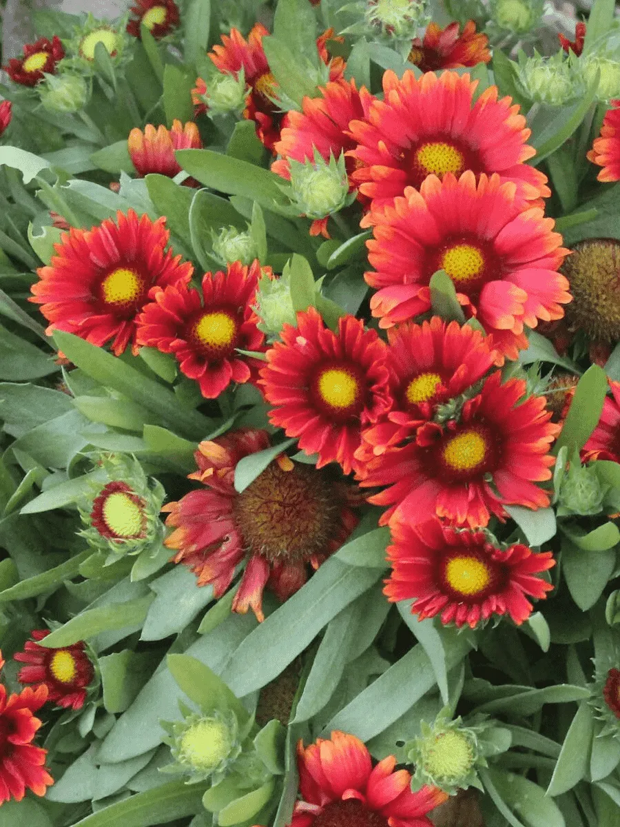 Гайлардия гибридная сорта *Arizona Red Shades* пленяет взор яркими красками и элегантностью форм. Это многолетнее растение высотой около полуметра отличается компактной прямостоячей кроной, украшенной крупными соцветиями-корзинками диаметром до восьми сантиметров. Листья глубоко рассечённые, серо-зелёные, покрыты нежным пушком, придающим растению особую бархатистость и утончённость. Цветки поражают разнообразием оттенков красного спектра от насыщенно-бордового до ярко-малинового, создавая эффект переливающихся огней на фоне зелени. Период цветения продолжительный, начинается в июне и длится до поздней осени, наполняя сад теплом и солнечным светом даже в пасмурную погоду. Растёт гайлардия быстро, легко адаптируется к различным условиям, предпочитая солнечные места и хорошо дренированные почвы, становясь украшением каменистых садов, бордюров и миксбордеров.