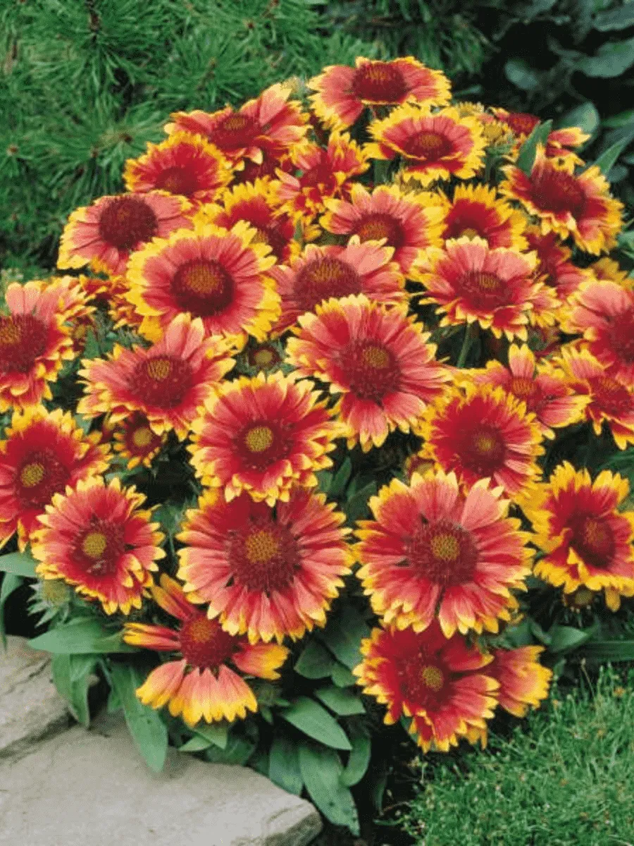Гайлардия гибридная сорта *Arizona Sunset* пленяет взор роскошью ярких соцветий, словно раскалённые искры солнца, застывшие среди зелёной листвы. Её крепкий прямостоячий стебель высотой до полуметра увенчан крупными корзинками цветов диаметром около восьми сантиметров, где золотисто-оранжевые язычковые лепестки плавно переходят в тёмную сердцевину, создавая эффект градиента от пламенного золота до густого пурпура. Листья линейно-продолговатые, слегка шероховатые, насыщенно-зелёного цвета, придают растению особую декоративность даже вне периода цветения. Цветёт гайлардия обильно и продолжительно, начиная с июня и заканчивая первыми заморозками, радуя садоводов своей неприхотливостью и устойчивостью к засухе. Этот солнечный цветок прекрасно смотрится в миксбордерах, рокариях и клумбах, украшая собой сады и парки, наполняя пространство теплом и светом южных пустынь Аризоны.