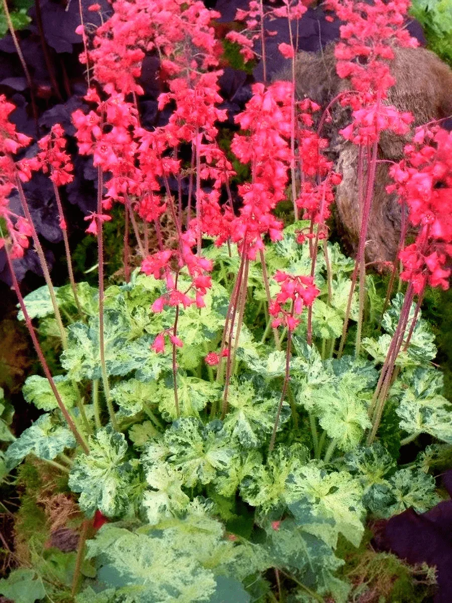 Гейхера **Hercules** — роскошная представительница семейства Камнеломковых, поражающая воображение своей мощью и благородством форм. Мощные прямостоячие стебли высотой до полуметра несут крупные листья сердцевидной формы, словно вырезанные искусной рукой мастера. Листья украшены контрастными прожилками, придающими особую декоративность растению даже вне периода цветения. Их поверхность бархатиста, насыщенно-зелёного цвета с серебристым отливом, переходящим в бронзовый оттенок ближе к осени. Цветки гейхеры собраны в рыхлые метельчатые соцветия, возвышающиеся над листвой подобно воздушному облаку нежно-розовых звёздочек. Период цветения продолжительный, начинается в июне и длится до конца июля, наполняя сад изысканным очарованием. Растёт гейхера медленно, формируя компактную куртину диаметром около 45 см, предпочитая полутень и умеренно влажные почвы. Благодаря устойчивости к холоду и неприхотливости растение прекрасно подходит для украшения тенистых уголков сада, создавая атмосферу спокойствия и гармонии.