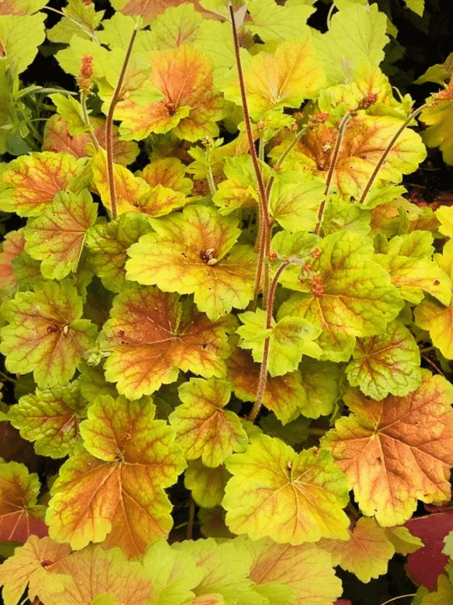 Гейхера сорта *Miracle* пленяет взор изысканным сочетанием форм и оттенков, превращаясь в настоящее чудо садового искусства. Её листья образуют плотную розетку, словно живописная палитра художника, где каждый листок — уникальное произведение природы. Окраска варьируется от насыщенно-зелёной до бронзово-красной, переливаясь оттенками золота и меди, особенно ярко проявляясь весной и осенью. Листья сердцевидной формы украшены чёткими жилками, придающими особую декоративность растению даже вне периода цветения. Цветки гейхеры *Miracle*, собранные в нежные метёлковидные соцветия, возвышаются над листвой, создавая воздушную дымку нежно-розовых или кремовых оттенков. Растение предпочитает полутень и умеренно влажные почвы, прекрасно адаптируясь к различным условиям выращивания и украшая собой тенистые уголки сада, рокарии и альпийские горки.