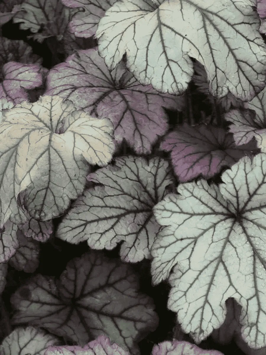 Гейхера сортовая 'Spellbound' пленяет взор изысканным сочетанием форм и оттенков, превращаясь в настоящее украшение сада. Её листья образуют плотную розетку, состоящую из крупных сердцевидных пластин с волнистым краем, словно вырезанных искусной рукой мастера. Окраска листвы варьируется от насыщенно-бордового до пурпурного с серебристо-зелёными прожилками, создавая эффект переливающейся мозаики. Цветки гейхеры собраны в нежные метельчатые соцветия, возвышающиеся над листьями на тонких прочных стеблях высотой около полуметра. Бутоны раскрываются мелкими звёздочками белого цвета, источающими тонкий аромат, привлекающий насекомых-опылителей. Растёт гейхера медленно, формируя компактные кустики диаметром до 45 см, предпочитая полутень и умеренно влажные почвы. Благодаря своей декоративности и неприхотливости она широко используется ландшафтными дизайнерами для оформления альпийских горок, рокариев и миксбордеров, где её красота подчёркивается контрастом с соседними растениями.