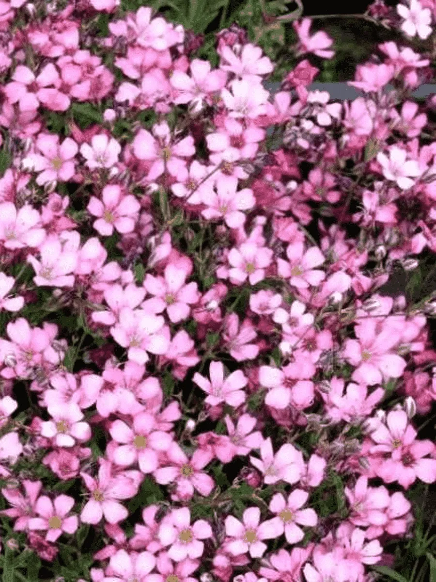 Гипсофила ползучая Rosea — нежная травянистая красавица, покоряющая сердца садоводов своей воздушностью и утончённостью. Это многолетнее растение образует пышную куртинку высотой до 15 см, состоящую из тонких стеблей, покрытых мелкими узкими листьями серо-зелёной окраски, придающих ей лёгкость и невесомость. Цветёт гипсофила обильно и продолжительно, покрываясь множеством крошечных цветков нежно-розового оттенка, собранных в рыхлые кисти, словно облако розовых пушинок, парящих над поверхностью земли. Её хрупкая красота особенно эффектна среди камней альпийских горок или в рокариях, где она мягко стелется между камнями, подчёркивая природную гармонию ландшафта. Благодаря способности быстро разрастаться и укореняться, гипсофила прекрасно подходит для заполнения пустот и создания живописных ковровых покрытий.