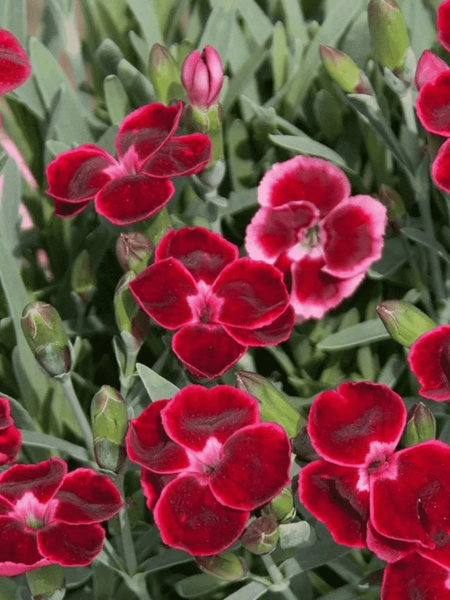 Гвоздика *Dianthus velvet* пленяет взор своей утончённой красотой и благородством форм. Это многолетнее травянистое растение образует компактную розетку густоопушённых серовато-зелёных листьев линейной формы, словно бархатная ткань, мягко переливающаяся на солнце. Цветоносы стройные, тонкие, поднимаются над лиственной массой, достигая высоты до полуметра. Бутоны раскрываются постепенно, демонстрируя изысканные цветки диаметром около пяти сантиметров, собранные в рыхлые соцветия. Лепестки цветка гофрированные, слегка волнистые по краям, окрашены в глубокий насыщенный пурпурно-красный оттенок, переходящий в тёмно-бордовый центр, создавая впечатление роскоши и элегантности. Аромат цветков тонкий, едва уловимый, придаёт саду особую атмосферу спокойствия и гармонии. Растение предпочитает солнечные места, хорошо дренированную почву и умеренное увлажнение, распространено преимущественно в садах и парковых композициях благодаря своему декоративному виду и неприхотливости в уходе.