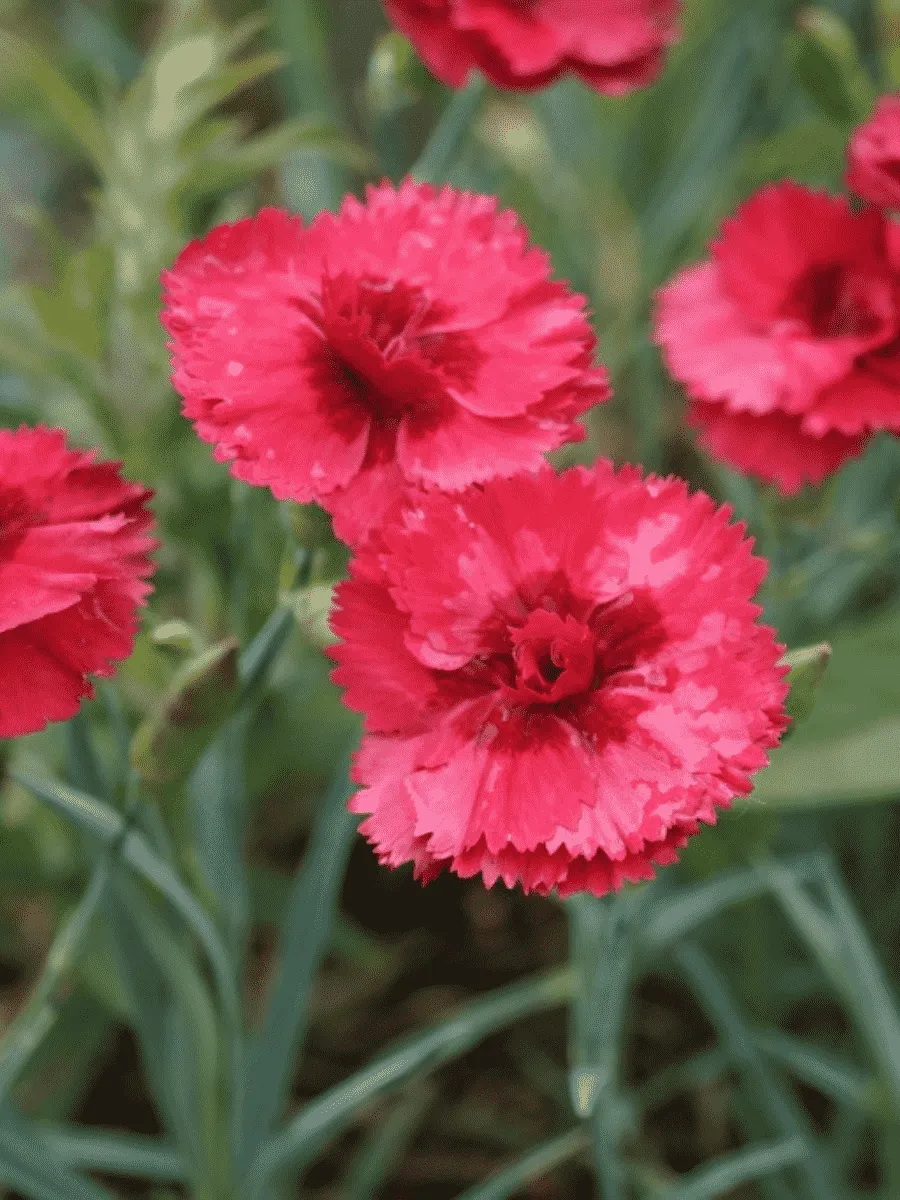 Гвоздика перистая Munot (Dianthus plumarius Munot) — очаровательное травянистое растение семейства гвоздичных, покоряющее сердца садоводов своей утончённой красотой и нежностью форм. Стебли тонкие, прямостоячие, достигают высоты до тридцати сантиметров, покрыты мелкими узкими листьями тёмно-зелёной окраски, придающей растению особую изысканность и благородство. Листья линейные, слегка серповидно-изогнутые, словно миниатюрные зелёные кинжалы, расположенные попарно вдоль стебля. Цветки собраны в рыхлые соцветия, распускаются в июне-июле, очаровывая взгляд своими многочисленными лепестками нежно-розового оттенка, украшенными тонкими белыми полосками и штрихами, будто нарисованными рукой искуснейшего художника-миниатюриста. Бутоны раскрываются постепенно, наполняя воздух тонким ароматом, который напоминает сладковатый запах свежевыпеченного хлеба. Растёт преимущественно на сухих каменистых склонах, предпочитая солнечные места и лёгкую плодородную почву, распространено в горных районах Европы, включая Альпы и Карпаты, где оно образует живописные ковры среди камней и трав, радуя глаз путешественников и любителей природы.