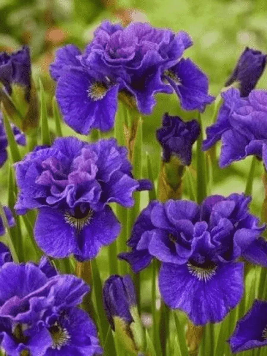 Ирис сибирский сорта *Concord Crush* пленяет взор изысканным сочетанием благородной простоты и утончённой элегантности. Его узколинейные листья, словно зелёные клинья мечей, устремлены вверх, создавая стройную вертикальную композицию. Цветоносы достигают высоты до метра, увенчанные крупными цветами диаметром около десяти сантиметров. Лепестки венчика окрашены в насыщенный сине-фиолетовый оттенок с бархатистым отливом, контрастируя с жёлтыми бородками, придающими особую декоративность соцветиям. Бутоны раскрываются постепенно, продлевая период цветения с июня по июль. Растение предпочитает влажные почвы и солнечные места, легко адаптируется к различным климатическим условиям, демонстрируя устойчивость к холоду и засухе. Этот сорт идеально подходит для оформления садов и парков, где его строгие формы и яркие краски создают атмосферу гармонии и спокойствия.
