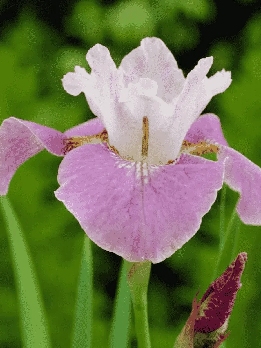 Ирис сибирский 'Dance Ballerina Dance' пленяет взор изысканным сочетанием грациозности и благородства. Его узкие, длинные листья образуют пышную зелёную розетку, словно нежная зелень весеннего луга, подчёркивая стройность стеблей высотой до метра. Цветки крупные, диаметром около десяти сантиметров, раскрываются в июне-июле, демонстрируя удивительную палитру оттенков от нежно-кремового до золотисто-жёлтого с едва заметной сеточкой тёмных прожилок на нижних лепестках. Верхние доли венчика слегка загнуты назад, придавая цветкам воздушность и лёгкость, будто танцующие балерины в полёте. Растение предпочитает влажные почвы и солнечные места, легко адаптируется к различным условиям произрастания, устойчиво к болезням и зимостойко даже в суровых климатических зонах средней полосы России. Этот сорт станет украшением любого сада, привнося атмосферу утончённости и гармонии природы.