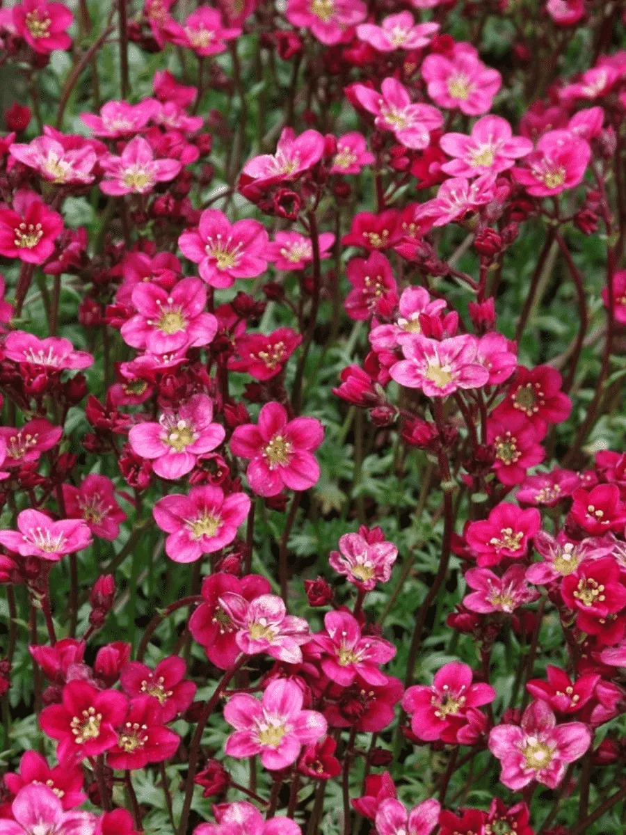 Камнеломка Арендса *Blutenteppich* пленяет взор густым ковром нежной зелени, украшенным яркими алыми звёздочками цветов. Её плотная розетка состоит из округлых мясистых листочков насыщенного изумрудного оттенка, слегка волнистых по краям и покрытых тонким пушком, придающим растению бархатистость и мягкость очертания. Цветки собраны в рыхлые зонтичные соцветия, возвышающиеся над листвой на тонких прочных стеблях высотой до 15–20 см. Лепестки цветков окрашены в интенсивный рубиновый тон, контрастируя с золотистыми тычинками и создавая эффектную игру света и тени среди зелёного покрова. Растёт быстро, легко разрастаясь и заполняя пространство между камнями и плитами мощёных дорожек, предпочитая полутень и умеренно влажные почвы. Благодаря своей неприхотливости и декоративности камнеломка широко используется в ландшафтном дизайне альпийских горок, рокариев и каменистых садов, где её яркие цветы радуют глаз с мая по июнь, превращая суровую поверхность камней в живописный красочный ковер.