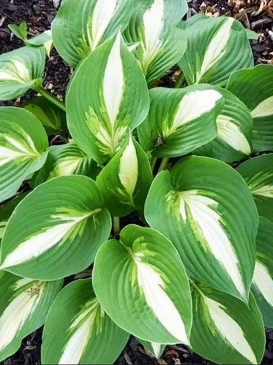 Хоста сорта *Ann Kulpa* пленяет взор своей изысканной красотой и благородством форм. Это многолетнее травянистое растение образует плотную розетку крупных сердцевидных листьев насыщенного зелёного цвета с широкой кремово-белой каймой, придающей листве особую декоративность и элегантность. Листья гладкие, глянцевые, слегка волнистые по краям, создают живописную игру света и тени даже в полутени сада. Цветоносы возвышаются над листьями, украшаясь мелкими колокольчатыми цветами нежно-лилового оттенка, собранными в рыхлые кисти. Высота взрослого экземпляра достигает около полуметра, ширина розетки примерно такая же. Растёт медленно, постепенно формируя компактные кустики, прекрасно подходящие для тенистых уголков сада, рокариев и миксбордеров. Сорт ценится за устойчивость к болезням, неприхотливость и способность сохранять свою привлекательность до поздней осени.