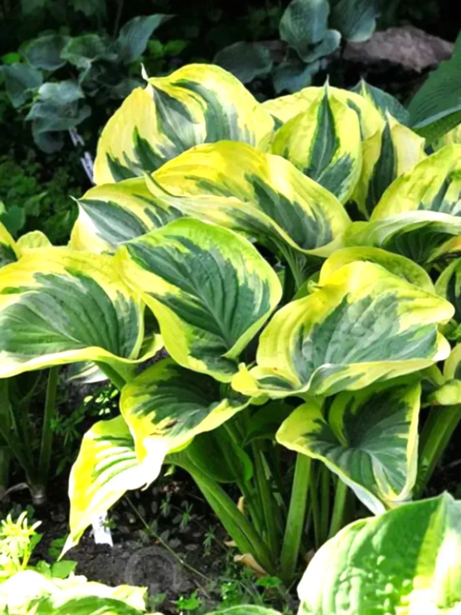 Хоста сорта *Broadway* пленяет взор своей изысканной декоративностью и благородством форм. Это многолетнее травянистое растение образует плотную розетку крупных овально-ланцетных листьев насыщенного изумрудно-зелёного цвета с широкой кремово-белой каймой, придающей растению особую элегантность и контрастность. Листья гладкие, слегка волнистые по краям, глянцевые, словно покрытые тонким слоем воска, создают впечатление роскошной ткани, переливающейся на солнце. Высота взрослого куста достигает примерно полуметра, ширина около метра, благодаря чему хоста прекрасно смотрится как солитерная посадка, так и в составе композиций. Цветёт обильно мелкими колокольчатыми цветами нежно-лилового оттенка, собранными в высокие рыхлые соцветия-метёлки, возвышающиеся над листвой подобно воздушному кружеву. Растение предпочитает полутень и влажные плодородные почвы, отличается устойчивостью к болезням и неприхотливостью в уходе, легко размножается вегетативно и быстро разрастается, формируя живописные куртины, украшающие садовые уголки долгие годы.