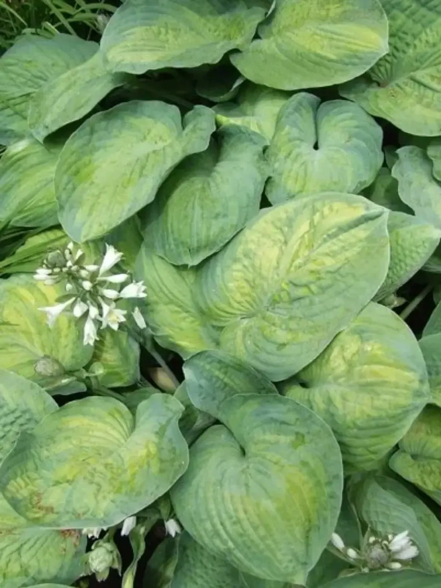 Хоста *Georg Smith* пленяет взор роскошной листвой насыщенного синевато-зелёного оттенка, украшенной широкими кремово-белыми полосами вдоль листовых пластин, придающих растению изысканный контраст и элегантность. Листья крупные, сердцевидные, слегка волнистые по краям, плотные и мясистые, словно бархатная ткань, гладко блестящая после дождя. Высота взрослого куста достигает полуметра, ширина около метра, создавая пышную зелёную массу, идеально подходящую для тенистых уголков сада. Цветёт растение скромно, выбрасывая высокие стрелки с мелкими светло-лиловыми колокольчатыми цветами, возвышающимися над листьями, привлекающими внимание своей нежностью и утончённостью. Растение предпочитает полутень и влажные плодородные почвы, прекрасно адаптируется к условиям средней полосы России, радуя садоводов своим декоративным видом долгие годы.