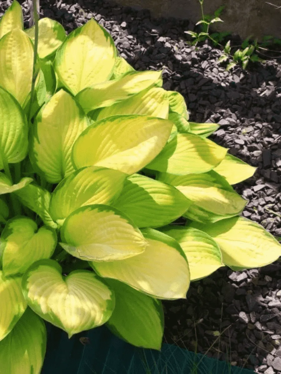 Хоста сорта *Gold Standard* пленяет взор роскошной листвой насыщенного золотисто-жёлтого цвета, окаймлённой тонкой зелёной каймой, придающей ей особую декоративность и элегантность. Листья крупные, сердцевидные, слегка волнистые по краям, гладко блестящие, словно покрытые тонким слоем воска. Высота взрослого куста достигает полуметра, ширина же превышает её вдвое, создавая пышную округлую крону. Цветёт растение в июле-августе, выбрасывая высокие стройные стрелки с мелкими колокольчатыми цветами нежно-лилового оттенка, источающими тонкий аромат. Предпочитает полутень и влажные плодородные почвы, прекрасно адаптируется к условиям средней полосы России, украшая тенистые уголки садов своей яркой экзотической красотой.