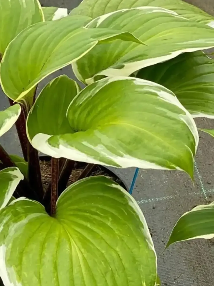 Хоста сорта *Sorbet* пленяет взор изысканным сочетанием нежной зелени и серебристого блеска, словно покрытая тонким слоем сахарной пудры. Листья крупные, сердцевидные, слегка волнистые по краям, образуют пышную розетку высотой около полуметра. Верхняя сторона листа украшена широкими кремово-серебристыми мазками, плавно переходящими в насыщенно-зелёную кайму, придающую растению особую декоративность даже вне периода цветения. Цветоносы возвышаются над листвой, увенчанные мелкими колокольчатыми цветами нежно-фиолетового оттенка, источающими тонкий аромат. Растёт медленно, предпочитая полутень и влажные плодородные почвы, постепенно формируя плотные куртины, способные украсить тенистые уголки сада своей элегантностью и благородством.