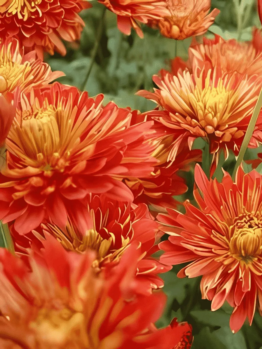 Хризантема гибридная *Bronze Krone* пленяет взор роскошной палитрой бронзово-золотистых оттенков, словно осенний закат застыл в её лепестках. Компактный куст высотой около полуметра украшен крупными соцветиями диаметром до десяти сантиметров, состоящими из множества узких язычковых цветков, слегка загнутых внутрь, придающих бутонам эффектную бархатистость. Листья тёмно-зелёные, рассечённые, придают растению элегантность и подчёркивают благородство золотисто-коричневых цветов. Цветёт обильно и продолжительно, начиная с конца лета и вплоть до первых заморозков, радуя садоводов своей неприхотливостью и способностью украшать сад даже поздней осенью. Прекрасно переносит умеренные холода, устойчива к болезням и вредителям, легко размножается черенкованием и делением куста, быстро адаптируясь на новом месте произрастания.