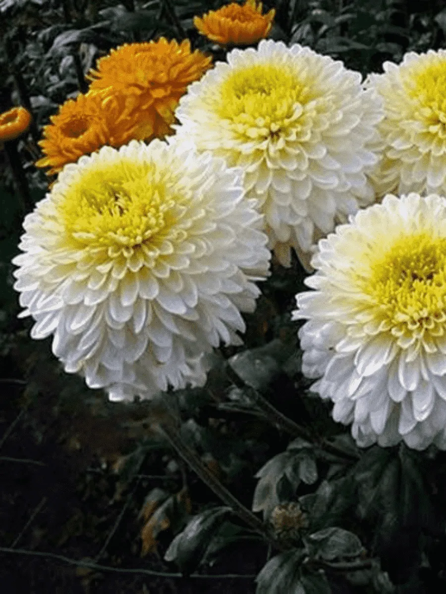 Хризантема *Margaret White* пленяет взор своей утончённой красотой и благородством форм. Это компактное растение высотой около полуметра обладает прямостоячими стеблями, покрытыми нежной бархатистостью, словно обласканными ласковым дыханием ветра. Листья тёмно-зелёные, рассечённые, слегка волнистые по краям, напоминают кружевную мантию, окутывающую стройные побеги. Цветки крупные, диаметром до десяти сантиметров, собраны в пышные соцветия-корзинки, состоящие из множества белоснежных лепестков, плавно переходящих от центра к краю, создавая впечатление лёгкого воздушного облака. Бутоны раскрываются постепенно, наполняя сад тонким ароматом свежести и чистоты. Период цветения продолжительный, начинается поздним летом и длится вплоть до первых заморозков, украшая осенний пейзаж изысканным белым цветом и даря ощущение покоя и гармонии.
