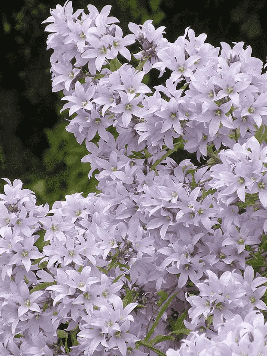 Колокольчик молочноцветковый — изысканное растение семейства колокольчиковых, покоряющее сердца своей нежностью и утончённостью. Стройные стебли высотой до метра несут многочисленные крупные цветки, собранные в рыхлые кистевидные соцветия, словно облачённые в белоснежную мантию чистоты и свежести. Листья продолговато-ланцетной формы, тёмно-зелёные, слегка морщинистые, придают растению благородство и завершённость облика. Цветки раскрываются постепенно, начиная снизу вверх, создавая впечатление медленно распускающегося букета, очаровывающего своим ароматом и элегантностью форм. Этот многолетник предпочитает влажные плодородные почвы лесных полян и лугов, распространяясь преимущественно в умеренных широтах Европы и Азии, где становится украшением садов и парков благодаря своему спокойному величественному виду и способности создавать атмосферу умиротворённости и гармонии природы.