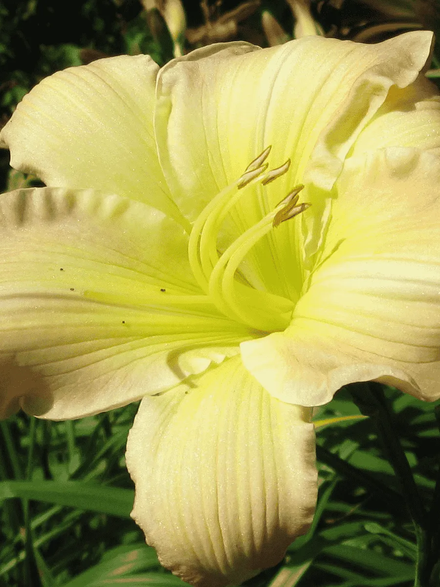 Лилейник **Big Smile** пленяет взор своей изысканной красотой и нежностью форм. Это многолетнее травянистое растение образует плотную розетку длинных узких листьев насыщенного зелёного цвета, слегка выгнутых дугой и придающих кусту элегантность и воздушность. Цветоносы возвышаются над листвой стройными стрелами, увенчанные крупными цветами диаметром около 15 см. Лепестки цветка нежно-абрикосового оттенка украшены золотисто-жёлтым центром и тонкой каймой кремово-белого тона, создавая впечатление улыбающегося солнца среди зелени сада. Период цветения длится долго, радуя глаз яркими красками с июня до августа. Растёт быстро, легко размножается делением корневища, прекрасно адаптируется к различным условиям выращивания, предпочитая солнечные места и плодородные почвы. Благодаря неприхотливости и декоративности лилейник Big Smile стал любимцем садоводов, украшая клумбы и сады своим жизнерадостным обликом.