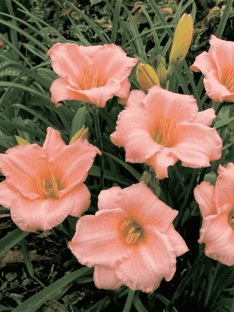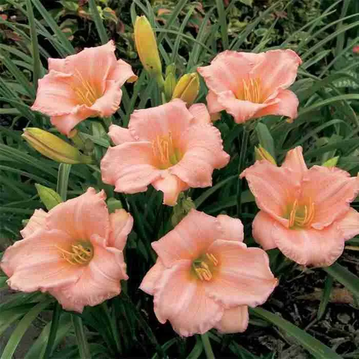 Лилейник *On and On* пленяет взор своей изысканной простотой и благородством форм. Это многолетнее травянистое растение образует плотную розетку длинных узких листьев насыщенного зелёного цвета, слегка выгнутых дугой, словно струи воды, стекающие каскадом от центра куста. Листья гладкие, блестящие, придающие растению элегантность и утончённость. Цветоносы возвышаются над лиственной массой, достигая высоты около метра, увенчанные крупными цветами диаметром до 15 см. Лепестки цветков нежно-оранжевого оттенка плавно переходят в золотисто-жёлтые тона ближе к центру цветка, создавая впечатление мягкого сияния. Бутоны раскрываются постепенно, один за другим, продлевая период цветения с июня по август. Растение неприхотливо, устойчиво к болезням и неблагоприятным условиям среды, прекрасно адаптируется к различным типам почв и освещённости, становясь украшением садов и парков, где бы ни поселилось.