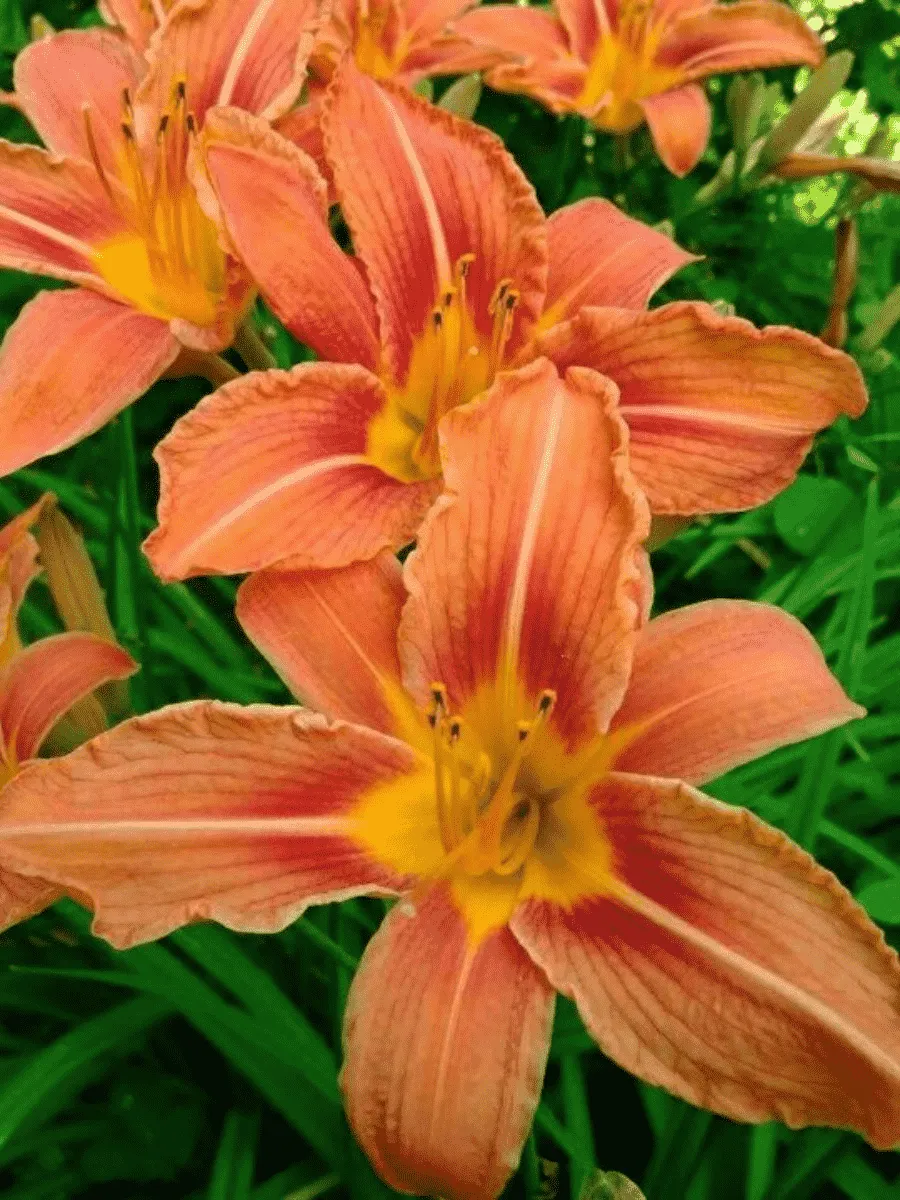 Лилейник оранжевый (Hemerocallis fulva), широко известный также как красоднев, представляет собой многолетнее травянистое растение семейства лилейниковых, покорившее сердца садоводов своей неприхотливостью и изысканной красотой цветения. Его мощные корневища образуют плотную дерновину, способствующую быстрому разрастанию и формированию густых куртин. Листья линейной формы, длинные и узкие, ярко-зелёного цвета, собраны в прикорневую розетку, создавая живописный фон для эффектных цветков. Цветоносы возвышаются над листьями, достигая высоты до метра, увенчанные крупными ароматными цветами диаметром около десяти сантиметров. Лепестки цветка нежные, шелковисто-оранжевые, слегка волнистые по краям, собранные в элегантные воронкообразные соцветия, раскрывающиеся один за другим, обеспечивая длительное декоративное цветение с июня по август. Благодаря способности легко размножаться вегетативно и семенами, лилейник оранжевой окраски уверенно распространяется в садах и парках, радуя глаз яркими красками даже в полутени и на бедных почвах.