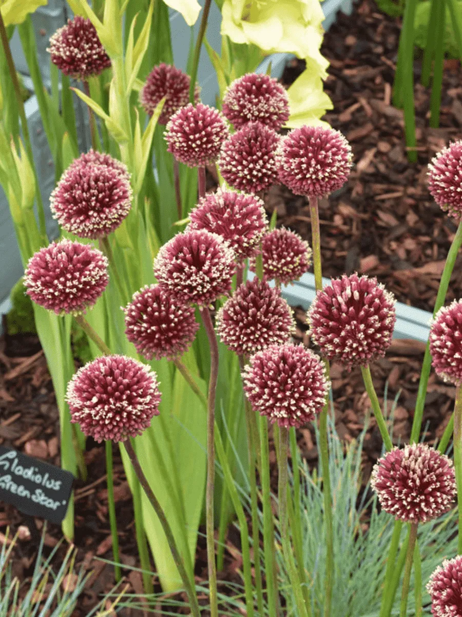 Лук декоративный *Red Mohican* представляет собой эффектное многолетнее растение семейства Амариллисовые (Amaryllidaceae), поражающее воображение своей яркой экзотической красотой. Его длинные узколинейные листья образуют пышную зелёную розетку, подчёркивая элегантность облика. Но истинная прелесть раскрывается во время цветения: мощные стрелки высотой до полуметра несут крупные зонтики насыщенно-красных цветков, словно языки пламени, горящие среди зелени сада. Цветки обладают оригинальной формой трубчатых лепестков, собранных в плотные соцветия, придающие растению особую декоративность и привлекательность. Этот лук предпочитает солнечные места и хорошо дренированные почвы, легко размножаясь луковицами-детками и создавая живописные группы на клумбах и альпийских горках. Красота *Red Mohican* способна украсить любой садовый уголок, привнося яркие акценты и очарование южной природы.