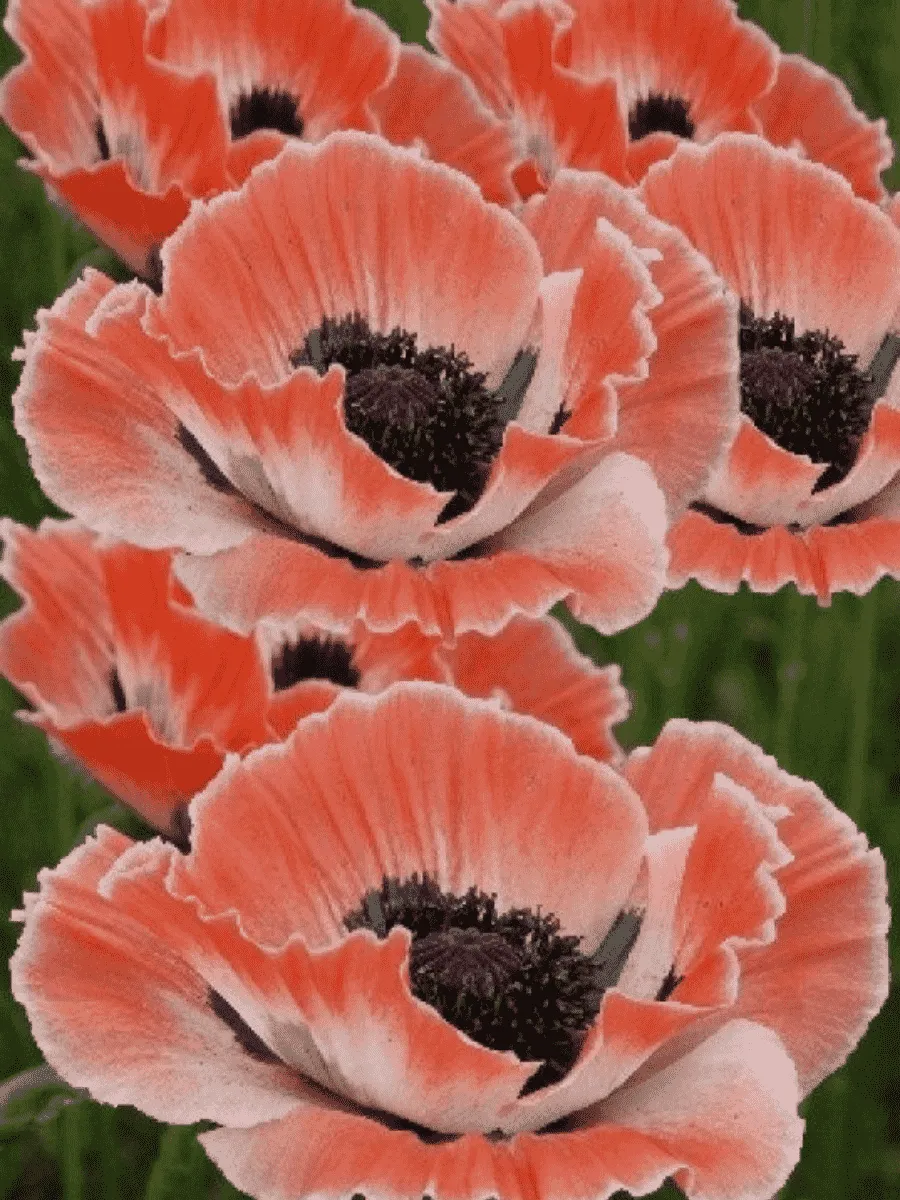 Мак восточный сорта *Carnival* пленяет взор роскошью цветения и утончённостью форм. Его крепкий стебель высотой до метра украшен крупными рассечёнными листьями насыщенного зелёного цвета, словно вырезанными искусной рукой мастера. Цветки раскрываются пышными бутонами диаметром около десяти сантиметров, демонстрируя всю палитру оттенков от нежнейшего розового до глубокого пурпурного, иногда переходящего в бархатистый чёрный тон. Лепестки тонкие, полупрозрачные, слегка волнистые по краям, создают впечатление лёгкости и воздушности. Сердцевина цветка подчёркнута контрастными тычинками золотистого оттенка, придающими особую изысканность композиции. Растёт мак преимущественно на солнечных участках, предпочитая плодородную почву и умеренный полив. Период цветения длится несколько недель, превращая сад в живописную картину, полную ярких красок и очарования природы.
