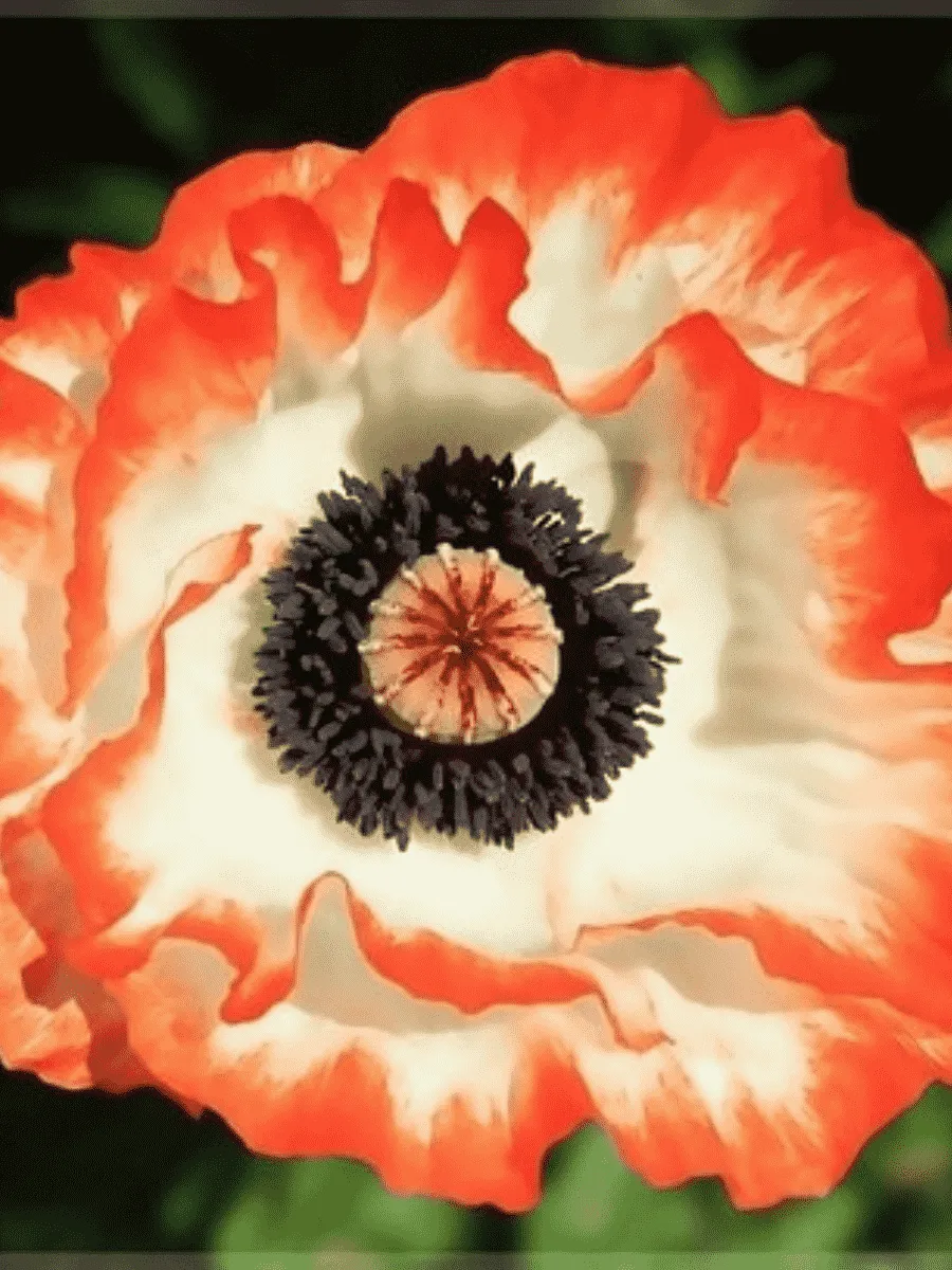 Мак восточный Picotee — роскошная садовая культура, пленяющая взор изысканными крупными цветами, словно драгоценности среди зелени. Его листья перисто-раздельные, нежно-зелёные, слегка рассечённые, придают растению лёгкость и воздушность. Цветки достигают диаметра до 15 см, раскрываясь нежной чашей с бархатисто-шелковистыми лепестками, украшенными тонкой каймой контрастного цвета, будто художник провёл кистью вдоль края каждого лепестка. Стебли тонкие, прочные, высотой около полуметра, несут цветы на длинных цветоносах, создавая впечатление невесомости и грациозности. Растёт мак быстро, предпочитает солнечные места и плодородную почву, радуя глаз своим великолепием всего несколько недель весной, оставляя после себя лишь воспоминания о мимолётной красоте.