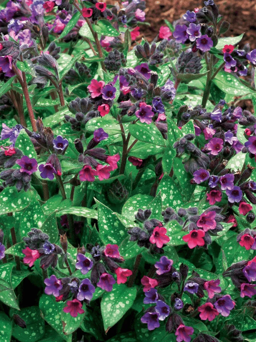 Медуница гибридная Victorian Brooch очаровывает своей утончённой красотой и элегантностью форм. Это многолетнее травянистое растение образует компактную розетку крупных сердцевидных листьев, украшенных серебристо-белым мраморным узором, словно драгоценной инкрустацией. Листья имеют нежную бархатистость поверхности и слегка волнистый край, придающий растению особую воздушность и лёгкость. Цветки появляются ранней весной, формируя небольшие кистевидные соцветия, состоящие из ярких фиолетово-розовых цветков с тонким ароматом, привлекающих внимание своим изысканным оттенком и формой венчика, похожей на миниатюрные колокольчики. Растёт медуница медленно, предпочитая полутень и влажные плодородные почвы, постепенно разрастаясь небольшими плотными куртинами, создавая живописные островки среди тенистых уголков сада.