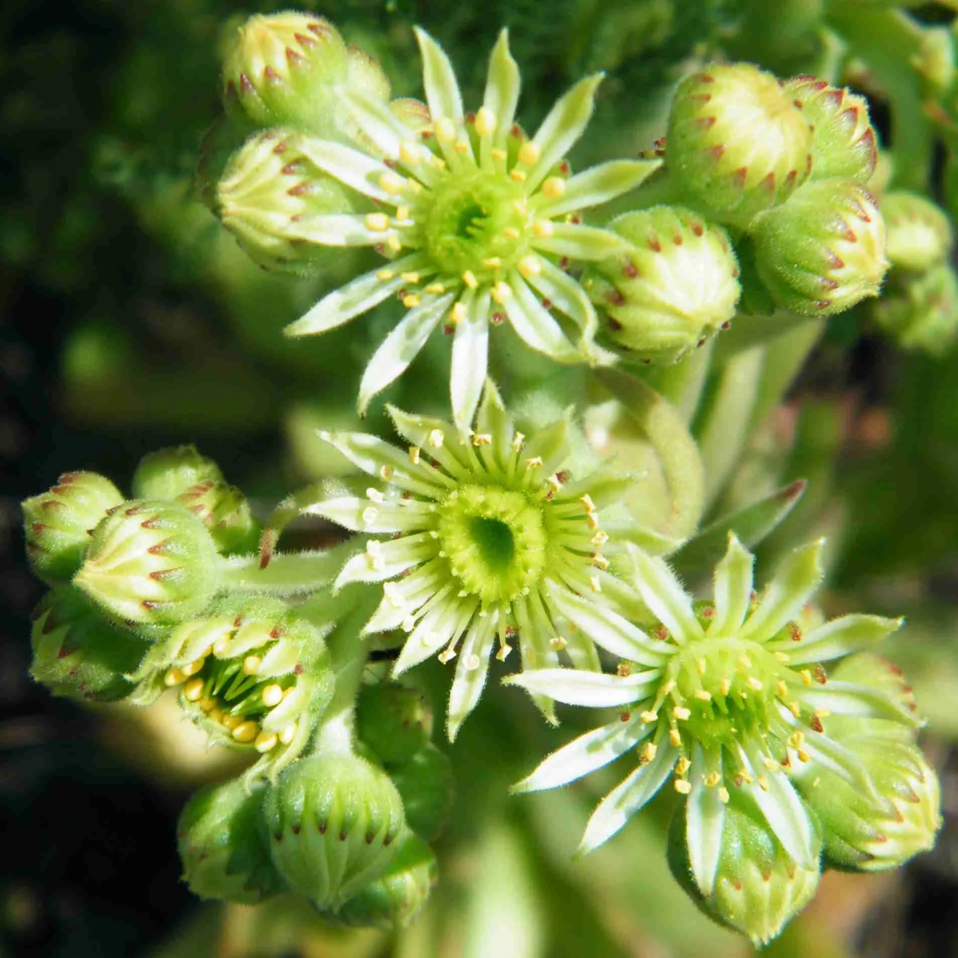Молодило русское (Sempervivum ruthenicum) — многолетнее травянистое растение семейства Толстянковые, покорившее сердца садоводов своей неприхотливостью и декоративностью. Оно образует плотные розетки мясистых, серо-зелёных листьев, слегка покрытых восковым налетом, придающим им благородную матовую поверхность. Листья имеют яйцевидную форму, постепенно сужающуюся к основанию, края часто украшены нежной розоватой каймой. Цветки собраны в крупные щитковидные соцветия, возвышающиеся над листьями на длинных прочных цветоносах высотой до 15 см. Лепестки цветков окрашены в яркие оттенки жёлтого цвета, создавая эффект солнечных лучей среди зелени. Растёт преимущественно на сухих каменистых склонах, известняковых обнажениях и песчаных почвах, предпочитая солнечные места и легко адаптируясь даже к суровому климату средней полосы России. Благодаря способности накапливать влагу в листьях, молодило прекрасно переносит засуху и становится украшением альпийских горок, рокариев и садовых композиций, радуя глаз своим живописным видом долгие годы.