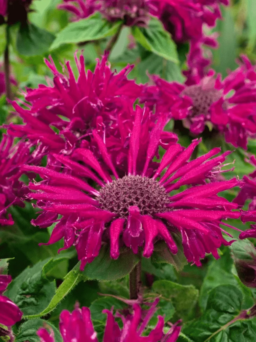 Монарда гибридная сорта *Bee-True* пленяет взор своей изысканной красотой и чарующим ароматом. Это многолетнее растение достигает высоты от 60 до 90 сантиметров, формируя компактную кустистую крону с прямостоячими стеблями, покрытыми нежной пушистой опушкой. Листья крупные, сердцевидные, темно-зелёного цвета с лёгким блеском, слегка морщинистые и зубчатые по краям, источают приятный лимонно-мятный аромат при прикосновении. Цветки собраны в пышные головчатые соцветия диаметром около 5–7 см, состоящие из множества мелких трубчатых цветков насыщенного пурпурно-красного оттенка, привлекающих внимание пчёл и бабочек. Период цветения продолжительный, начинается в июле и длится до конца августа, украшая сад яркими красками и наполняя воздух тонким благоуханием. Растёт быстро, предпочитает солнечные места и плодородные почвы, легко размножается делением куста и семенами, устойчиво переносит зиму даже в условиях умеренных широт средней полосы России.