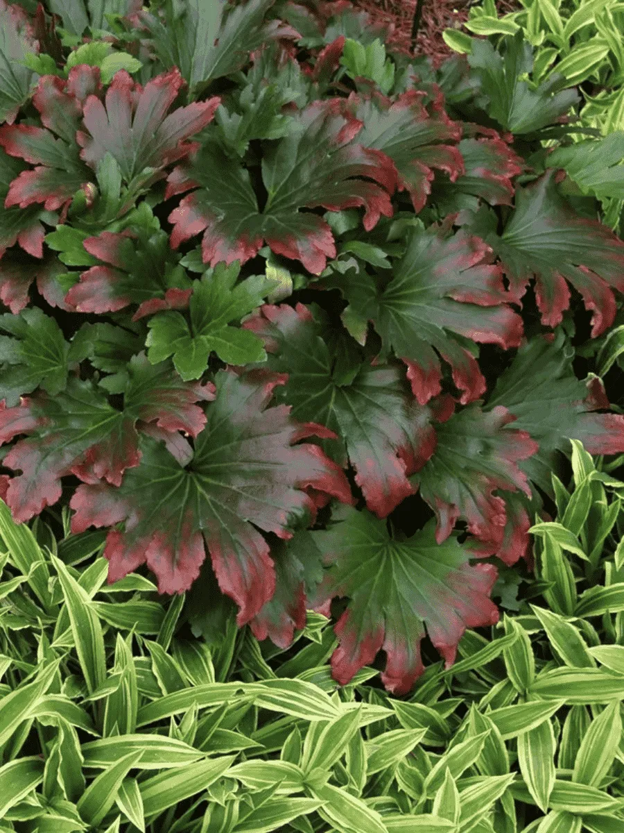 Мукдения росси Karasuba — очаровательное травянистое растение родом из Восточной Азии, покоряющее сердца садоводов своей изысканной красотой и неприхотливостью. Стройные побеги высотой до полуметра украшены крупными сердцевидными листьями насыщенного изумрудного оттенка, слегка волнистыми по краям и покрытыми нежной бархатистой поверхностью. Листья расположены супротивно, создавая эффектную зелёную массу, идеально подходящую для тенистых уголков сада. Цветёт мукдения скромно, мелкими белыми цветами, собранными в рыхлые кисти, однако именно её листва становится главным украшением участка, особенно осенью, когда листья приобретают яркие оттенки жёлтого и оранжевого цветов. Растение предпочитает полутень и влажные почвы, прекрасно чувствует себя среди кустарников и деревьев, гармонично вписываясь в ландшафт любого сада.