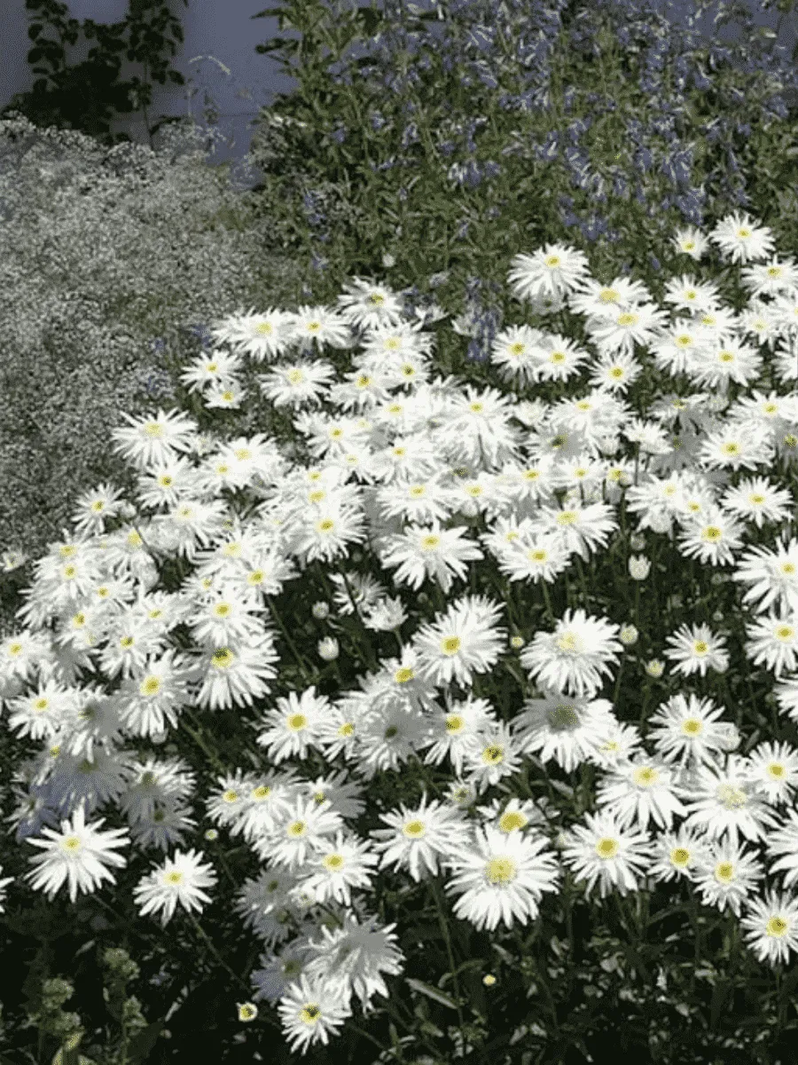 Нивяник наибольший Wirral Supreme — роскошная садовая культура, поражающая своей величавостью и благородством облика. Высокорослый многолетний травянистый красавец достигает внушительных размеров до метра высотой, украшая собой клумбы пышной зелёной листвой и крупными эффектными соцветиями. Листья удлинённые, тёмно-зелёные, слегка шероховатые, образуют плотную прикорневую розетку, подчёркивая стройность высоких стеблей. Цветёт обильно и продолжительно, начиная с июня и заканчивая сентябрём, раскрывая крупные белые корзинки диаметром около десяти сантиметров с ярко-жёлтыми серединками, словно солнечные лучи среди зелени. Соцветия возвышаются над листьями на крепких прямостоящих побегах, создавая впечатление изысканного букета, достойного восхищённых взглядов. Растение предпочитает плодородные почвы и солнечное местоположение, прекрасно размножается делением куста и семенами, легко адаптируясь к различным условиям выращивания и радуя садоводов своим великолепием долгие годы.