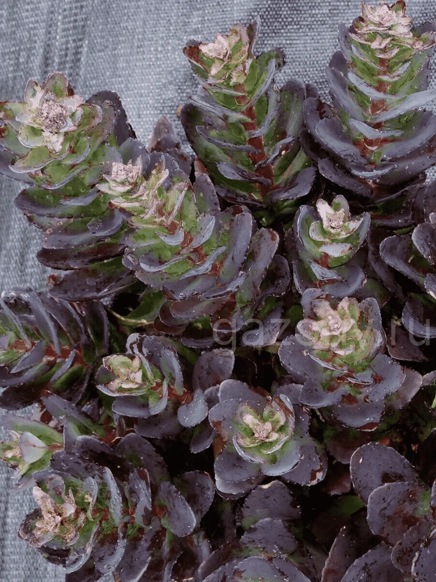 Очиток гибридный *Conga Line* пленяет взор своей изысканной красотой и элегантностью форм. Это многолетнее травянистое растение образует плотную компактную куртину высотой около 15–20 см, украшенную сочными мясистыми листьями насыщенного зелёного цвета с серебристым отливом, словно покрытыми тонким слоем перламутра. Листья имеют овально-ланцетную форму, слегка волнистые края придают растению особую декоративность даже вне периода цветения. Цветёт очиток обильно и продолжительно, начиная с середины лета до поздней осени, покрываясь многочисленными мелкими звёздчатыми цветами пурпурно-красной окраски, собранными в пышные соцветия-метёлки, привлекающие внимание яркими красками и создавая эффект живописного ковра среди садовых композиций. Растение отличается неприхотливостью, устойчиво к засухе и холоду, прекрасно адаптируется к различным условиям выращивания, предпочитая солнечные места и хорошо дренированные почвы. Благодаря своим декоративным качествам и простоте ухода, Очарование Конга Лайн становится незаменимым элементом ландшафтного дизайна, добавляя саду очарования и утончённости.