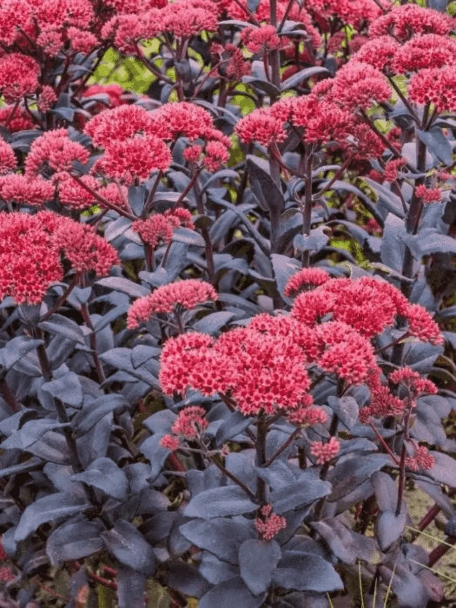 Очиток гибридный *Jose Aubergine* пленяет взор своей изысканной красотой и благородством форм. Это многолетнее травянистое растение образует компактную плотную куртину высотой около 15–20 см, украшенную сочными мясистыми листьями насыщенного пурпурно-фиолетового оттенка, словно переливающимися бархатом на солнце. Листья овально-ланцетной формы расположены густо, создавая эффект роскошного ковра. Цветёт очиток обильно и продолжительно, начиная с середины лета до поздней осени, покрываясь мелкими звёздчатыми цветами нежно-розовых оттенков, собранными в пышные щитковидные соцветия. Растение предпочитает солнечные места, хорошо дренированные почвы и легко адаптируется к различным условиям произрастания, становясь украшением каменистых садов, альпийских горок и бордюров.