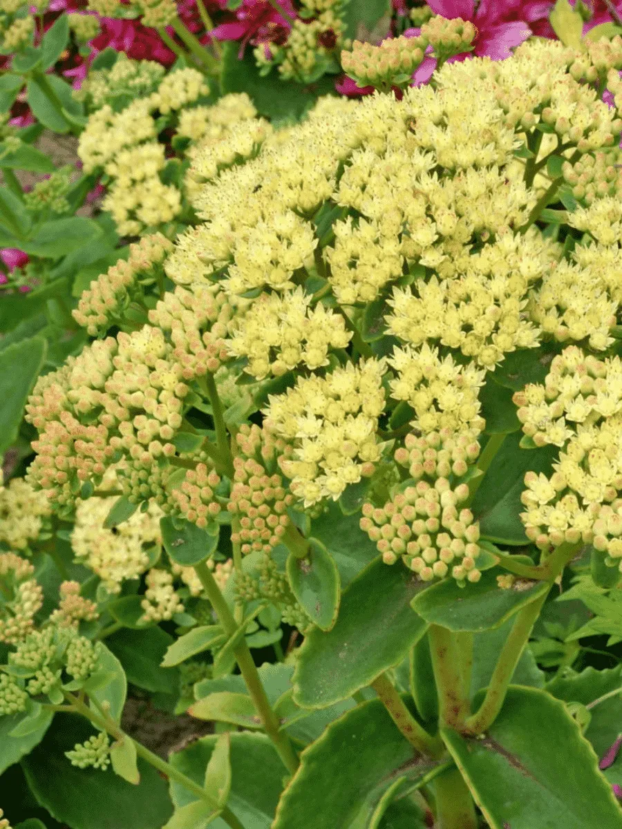 Очиток сорта *Sunkissed* пленяет взор нежной красотой своего облика. Это компактное травянистое растение образует плотную куртинку высотой около десяти сантиметров, украшенную сочными мясистыми листьями изумрудно-зелёного оттенка, слегка волнистыми по краям и покрытыми тонким восковым налетом, придающим им благородный блеск. Листья овальной формы располагаются густо, создавая впечатление мягкого бархата, переливающегося на солнце золотисто-жёлтым отливом. Цветёт очиток обильно мелкими звёздчатыми цветами кремово-белого цвета, собранными в рыхлые соцветия, словно крошечные свечи освещающие зелёный ковёр листвы. Растение отличается неприхотливостью, устойчивостью к засухе и морозу, прекрасно разрастается на солнечных участках каменистых садов и альпийских горок, радуя глаз своей живописностью долгие годы.
