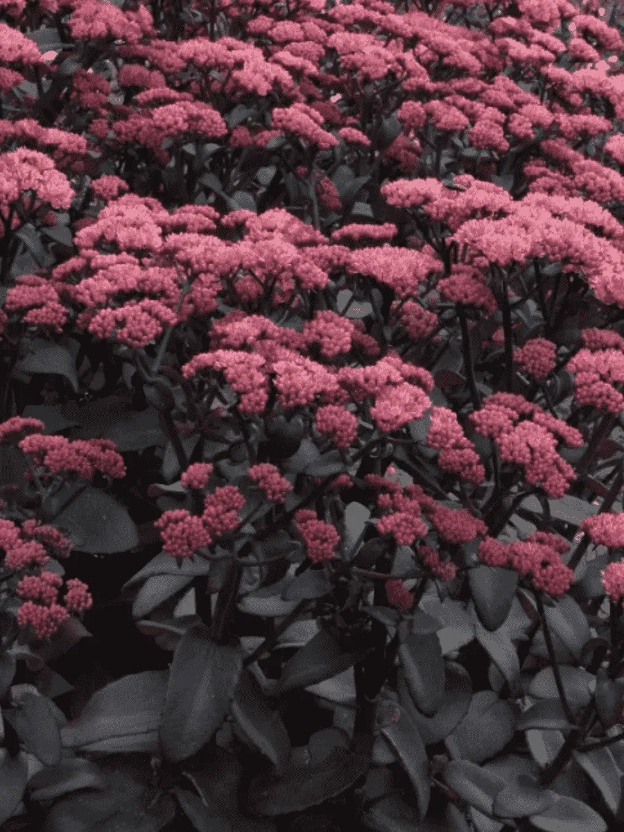 Очиток телефиум 'Purple Emperor' (Sedum telephium 'Purple Emperor') пленяет взор своей благородной пурпурной листвой, словно облачённой в бархатную мантию осеннего леса. Листья плотные, мясистые, яйцевидной формы, слегка загнутые вверх, будто бережно хранящие росу утренних часов. Их насыщенный тёмно-фиолетовый оттенок переливается глубокими оттенками красного и бронзового, создавая впечатление драгоценности среди зелёных травяных ковров сада. Цветки собраны в крупные плоские соцветия, состоящие из множества мелких звёздчатых цветков нежно-розового цвета, контрастирующих с листьями и придающих растению особую декоративность во время цветения летом-осенью. Стебли крепкие, прямостоячие, достигают высоты до полуметра, обеспечивая устойчивость даже в ветреную погоду. Растёт очиток медленно, формируя компактные кустики, легко размножается вегетативно и прекрасно переносит засуху благодаря способности накапливать влагу в листьях. Этот неприхотливый многолетник идеально подходит для каменистых садов, альпийских горок и бордюров, украшая собой самые солнечные уголки участка своим изысканным обликом и элегантностью форм.