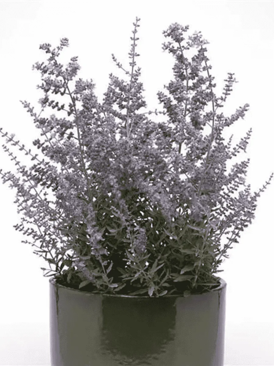 Перовска прямолистная 'Bluesette' — элегантное многолетнее растение семейства яснотковых, покоряющее сердца садоводов своей утончённой красотой и неприхотливостью. Стройные побеги высотой до метра украшены узкими серебристо-серыми листьями, словно покрытыми тонким слоем благородной пыли, придающим растению особую воздушность и лёгкость. Цветёт обильно и продолжительно, начиная с июля и вплоть до первых заморозков, покрываясь многочисленными мелкими голубовато-сиреневыми цветами, собранными в плотные колосовидные соцветия, похожие на миниатюрные свечи, мерцающие среди зелени сада. Растение предпочитает солнечные места, хорошо переносит засуху и бедные почвы, создавая живописную картину даже в условиях сурового климата средней полосы России. Благодаря своему декоративному облику и способности привлекать полезных насекомых, перовска стала незаменимым элементом ландшафтного дизайна, украшая сады и парки своим нежным очарованием и изысканной простотой.