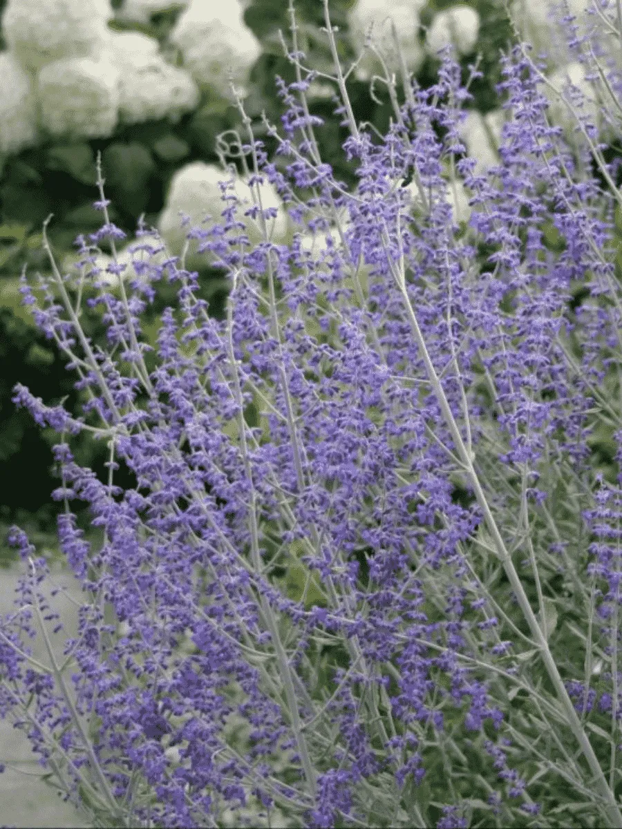 Перовския лебедолистная 'Little Spire' (Perovskia atriplicifolia 'Little Spire') пленяет взор своей утончённой красотой и благородством облика. Это компактный полукустарник высотой до одного метра с прямостоячими побегами, покрытыми серебристо-серым пушком, придающим растению лёгкий дымчатый оттенок. Листья перовскии узколанцетной формы, рассечённые, напоминают листья лебеды, покрыты нежным серовато-зелёным ворсом, создавая эффектную игру света и тени даже вне периода цветения. Но истинное великолепие раскрывается летом, когда растение покрывается многочисленными колосовидными соцветиями, состоящими из множества мелких цветков насыщенного лавандово-синего цвета, источающих тонкий аромат. Цветение продолжается долго, вплоть до первых заморозков, превращая сад в живописный уголок средиземноморских пейзажей. Растёт быстро, неприхотлива, предпочитает солнечные места и хорошо дренированные почвы, легко переносит засуху и морозы средней полосы России.