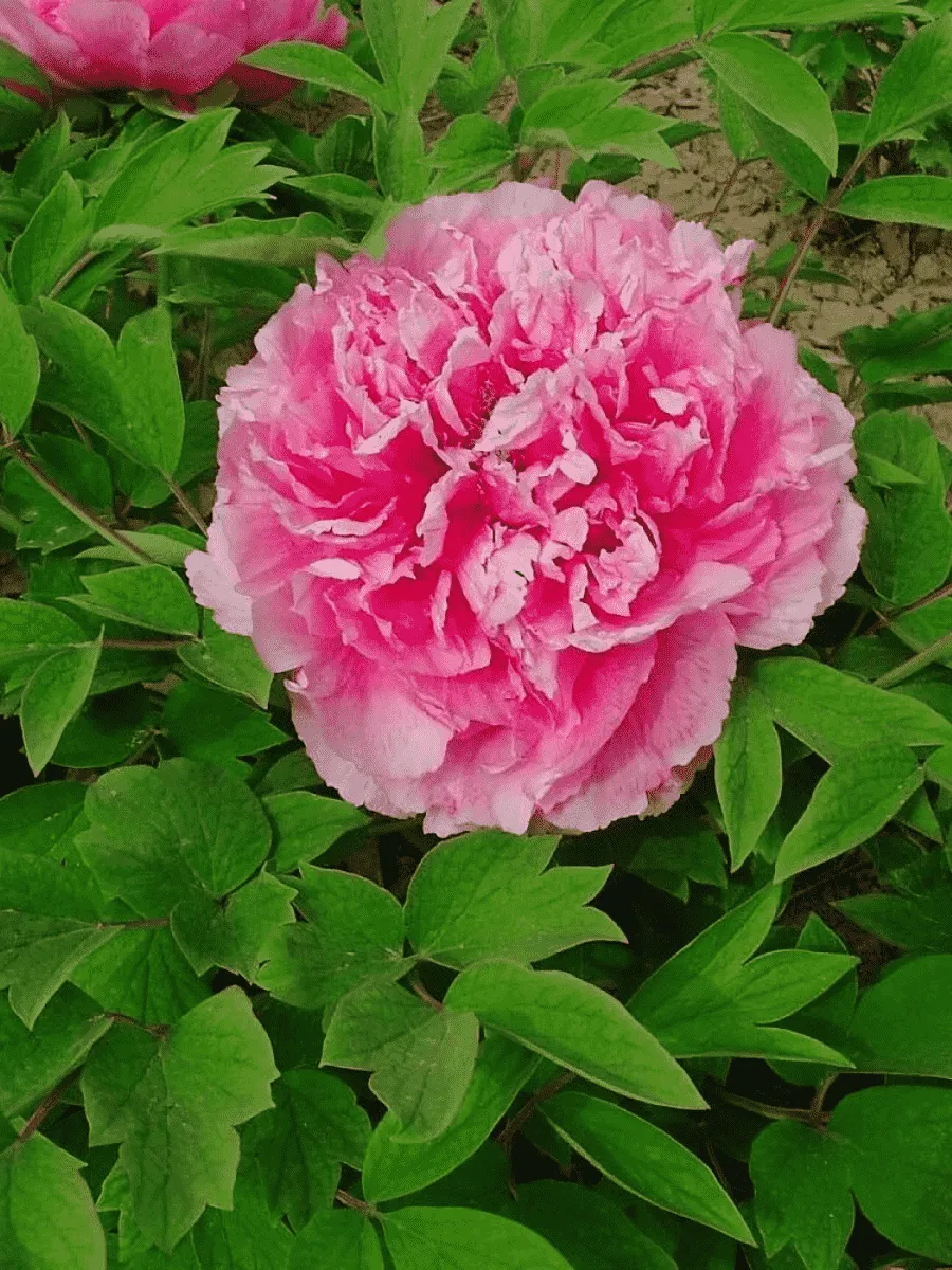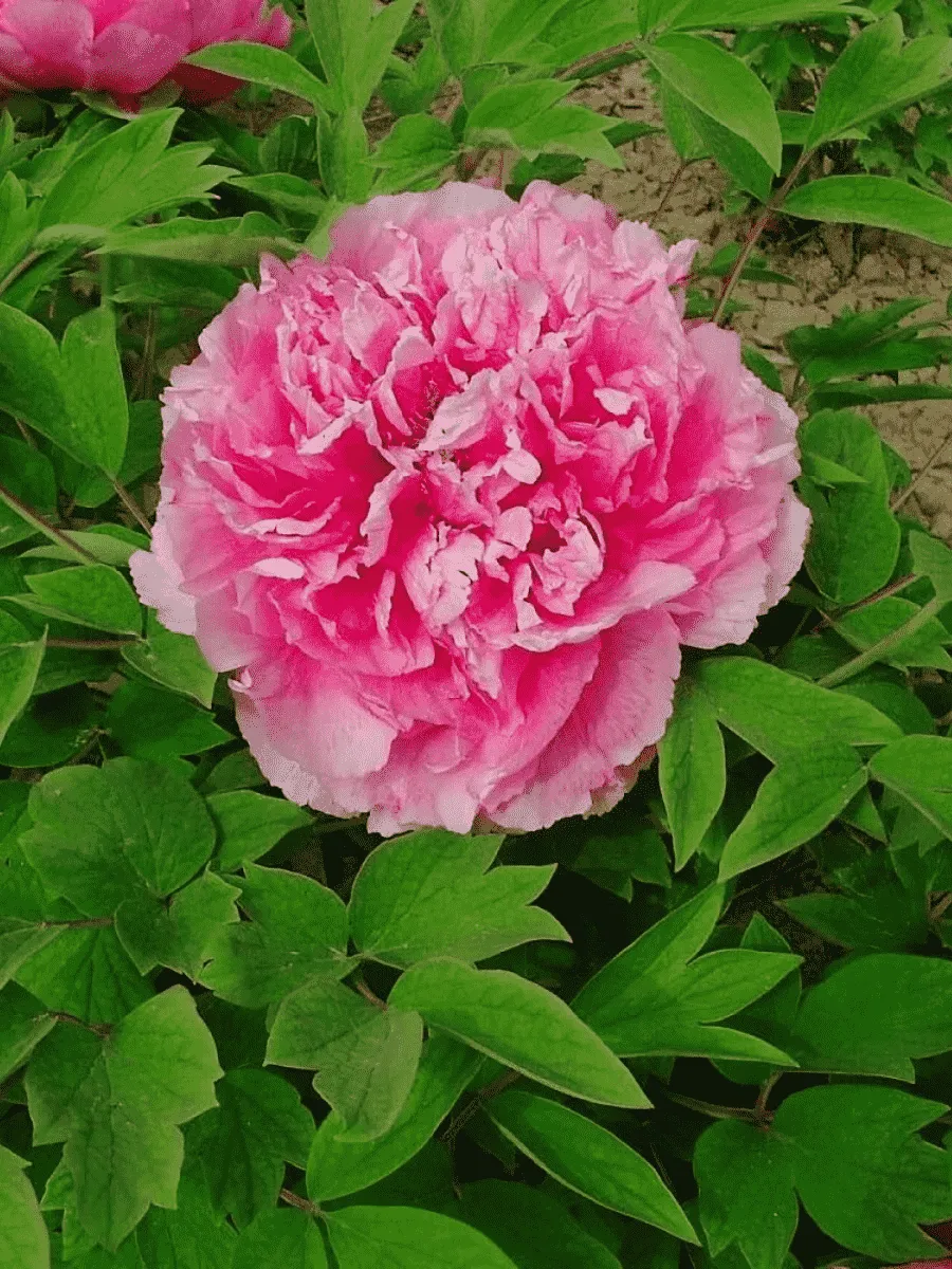 Пион древовидный сорта *Lu Fen* представляет собой величественное растение с раскидистой кроной и мощными ветвями, покрытыми крупными кожистыми листьями насыщенного зелёного цвета, слегка блестящими и украшенными волнистым краем. Цветки крупные, диаметром до 15 см, распускаются пышной розово-кремовой гаммой оттенков, постепенно переходящей от светлых пастельных тонов центра лепестков к нежному персиково-розовому краю. Бутоны появляются рано весной, раскрываясь медленно и торжественно, наполняя сад тонким ароматом, который напоминает сладость весеннего утра после дождя. Растёт пион умеренно быстро, достигая высоты около двух метров, предпочитая солнечные места и плодородную почву, устойчив к морозам средней полосы России. Этот сорт особенно ценится садоводами за свою декоративность и способность сохранять привлекательность даже после цветения благодаря красивой листве и аккуратности формы куста.