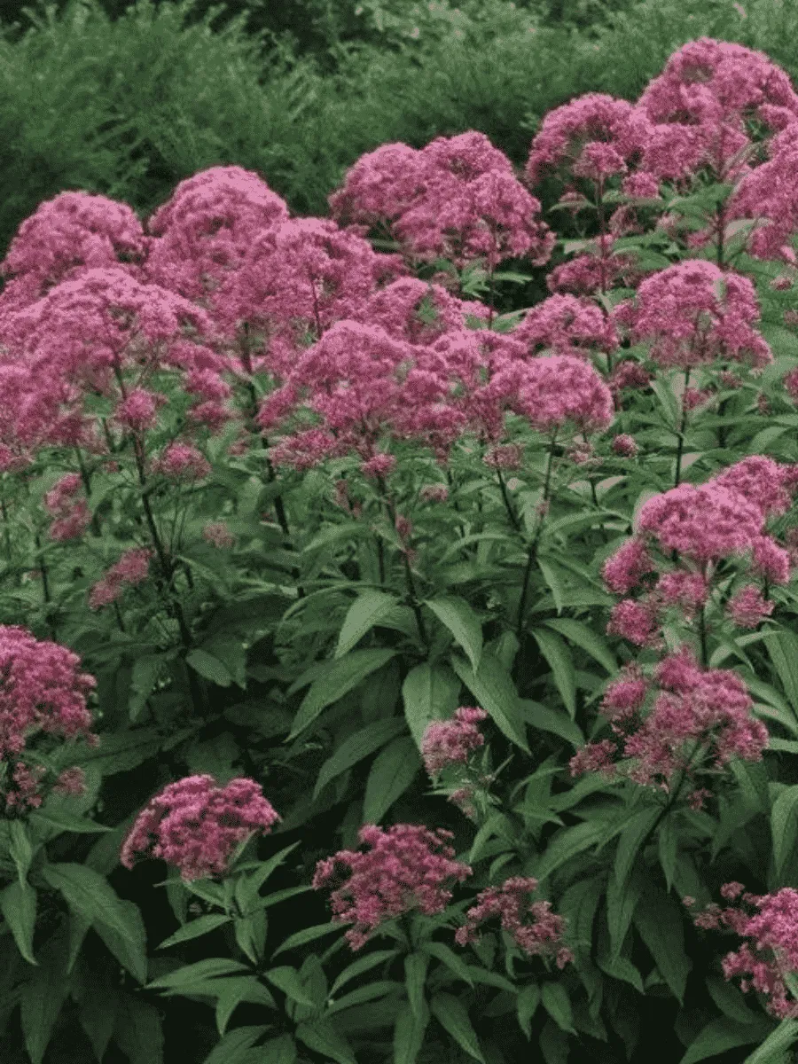 Посконник пятнистый (Eupatorium maculatum), многолетнее травянистое растение семейства Астровые, привлекает внимание своей живописной внешностью и благородством облика. Стройные прямостоячие стебли высотой до полутора метров украшены крупными листьями, расположенными супротивно друг другу. Листья овально-ланцетные, слегка зубчатые по краям, насыщенно-зелёного цвета с характерными тёмными пурпуровыми прожилками вдоль центральной жилки, придающими растению особую декоративность. Цветёт посконник пышными соцветиями-метёлками, состоящими из множества мелких трубчатых цветков лавандово-фиолетового оттенка, источающих тонкий аромат. Период цветения продолжается с июля по сентябрь, привлекая многочисленных насекомых-опылителей. Растение предпочитает влажные места обитания, такие как берега водоёмов, заболоченные луга и лесные поляны, распространено преимущественно в умеренных зонах Северной Америки, где образует густые заросли, украшая собой природные ландшафты.