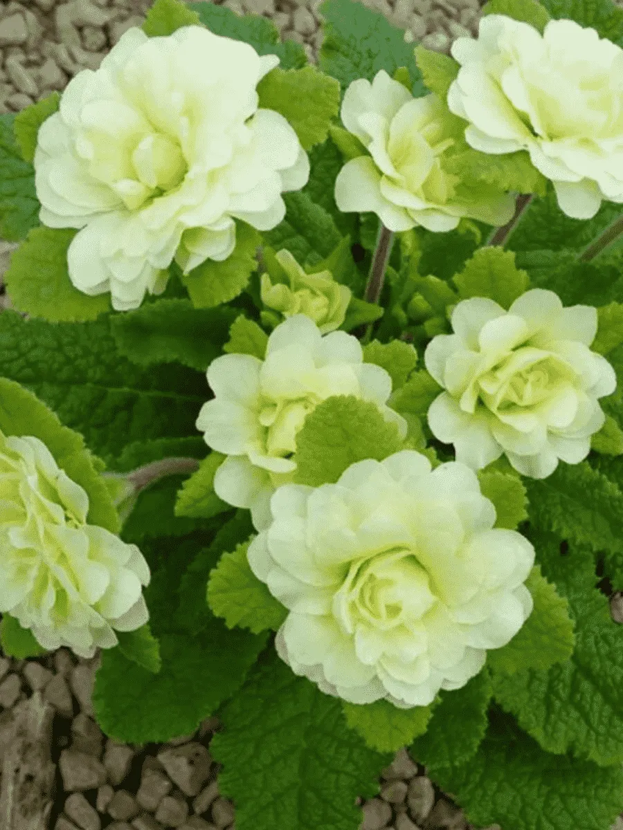 Примула махровая сорта *Jack the Lad* пленяет взор нежностью своего облика и изысканностью форм. Это компактное растение высотой около 15–20 см образует плотную розетку крупных сердцевидных листьев насыщенного зелёного цвета с волнистым краем, слегка бархатистых на ощупь. Цветоносы возвышаются над листвой, увенчанные пышными соцветиями диаметром до 8 сантиметров, состоящими из множества мелких цветков, собранных в густые шапки. Лепестки цветов имеют необычную двухцветную окраску: ярко-жёлтая середина плавно переходит в пурпурно-красные края лепестков, создавая эффект градиента и придавая растению особую декоративность. Период цветения продолжительный, начинается ранней весной и длится несколько недель, украшая сад яркими красками даже после окончания заморозков. Предпочитает полутень и влажные плодородные почвы, легко размножается делением куста и семенами, быстро адаптируясь к новым условиям произрастания.