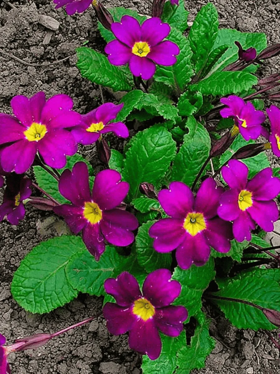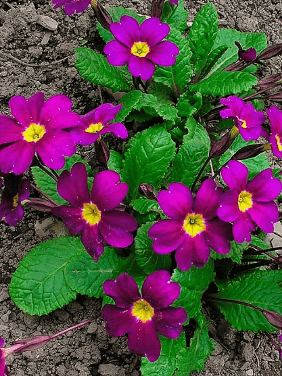 Примула Юлии сорта *Wanda* пленяет взор нежностью своего облика и утончённостью форм. Это компактное травянистое растение высотой около 15–20 см образует плотную розетку округлых, слегка волнистых листьев насыщенно-зелёной окраски с лёгким серебристым отливом. Листья бархатистые на ощупь, словно покрытые тонким слоем пудры, придают растению особую декоративность даже вне периода цветения. Цветоносы возвышаются над лиственной массой, увенчанные крупными одиночными цветами диаметром до 6 см, обладающими изысканным ароматом. Лепестки цветков нежно-розового оттенка плавно переходят в белоснежную сердцевину, создавая впечатление хрупкой фарфоровой чашечки, наполненной светом и теплом весеннего солнца. Период цветения продолжительный, начинается ранней весной и длится несколько недель, украшая сады и альпийские горки яркими красками и очарованием первоцвета. Растёт примула преимущественно на влажных плодородных почвах, предпочитая полутень и прохладу горных склонов, где её красота раскрывается во всей полноте.