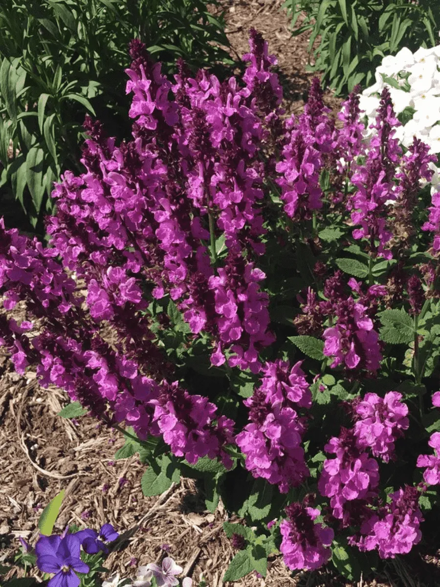 Шалфей дубравный сорта *Rose Marvel* пленяет взор нежностью пастельных оттенков и утончённой грацией облика. Это многолетнее растение достигает высоты около полуметра, формируя компактную кустистую крону с прямостоячими стеблями, покрытыми мелкими волосками. Листья овально-ланцетной формы, слегка зазубренные по краям, окрашены в насыщенный зелёный цвет с лёгким серебристым отливом, придающим растению особую изысканность. Цветки шалфея собраны в длинные колосовидные соцветия, возвышающиеся над листвой подобно тонким свечкам. Лепестки цветков нежно-розового оттенка, переходящего в пурпурно-лиловый ближе к центру венчика, создают впечатление мягкого бархата, переливающегося на солнце. Период цветения продолжительный, начинается в июне и длится до конца лета, наполняя сад ароматом пряности и свежести. Растёт шалфей легко, предпочитая солнечные места и плодородные почвы, быстро разрастаясь и создавая живописные группы, украшающие клумбы и бордюры.