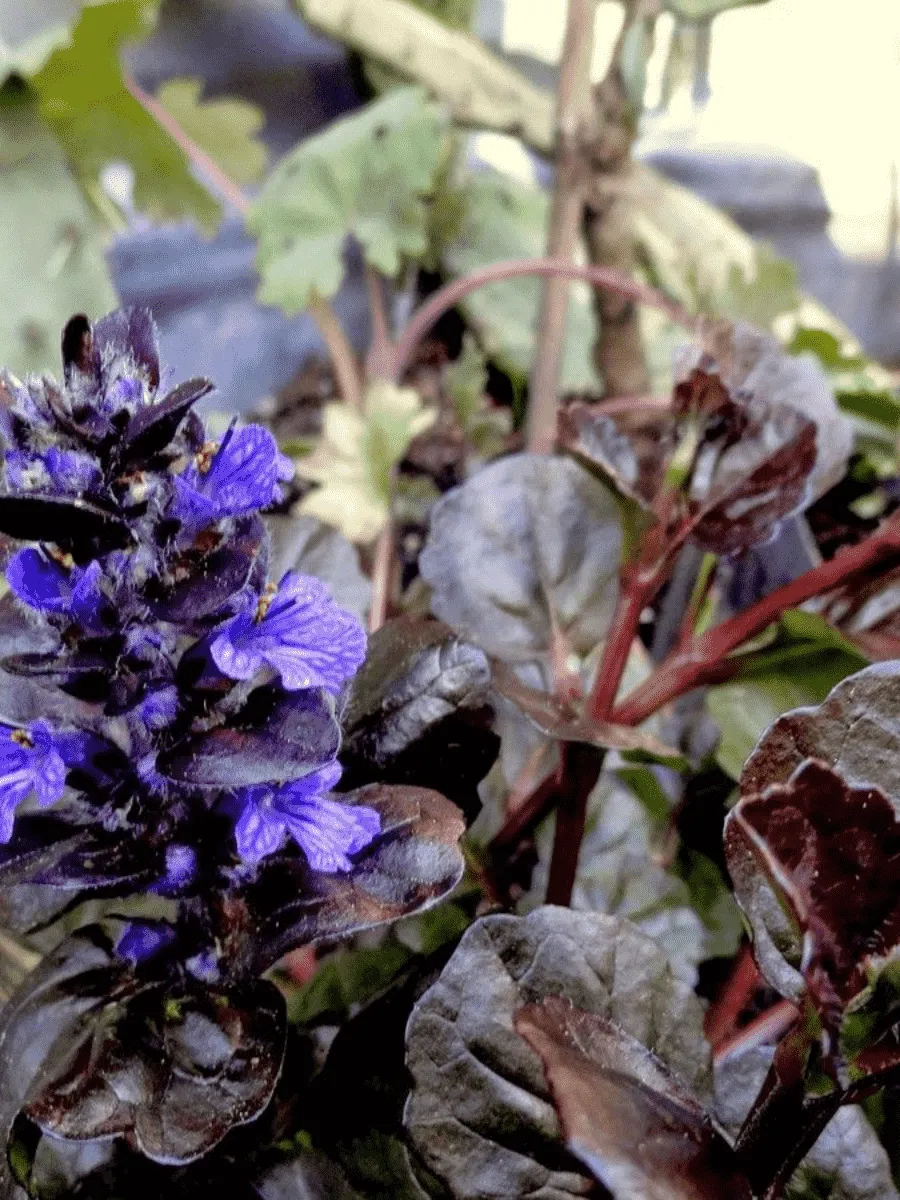 Живучка ползучая Махагони (Ajuga reptans 'Mahagony') пленяет взор своей изысканной красотой и благородством форм. Это многолетнее травянистое растение образует плотные ковры изумрудной зелени, украшенные листьями насыщенного бронзово-коричневого оттенка с пурпурным отливом, словно покрытыми тонким слоем драгоценного металла. Листья овально-ланцетные, слегка волнистые по краям, создают эффект переливающейся мозаики, особенно заметный после дождя или утренней росы. Цветки мелкие, нежно-сиреневые или голубовато-фиолетовые, собраны в небольшие колосовидные соцветия, возвышающиеся над лиственной массой, придавая растению особую воздушность и легкость. Стелющиеся побеги легко укореняются в узлах, позволяя живучке быстро разрастаться и покрывать почву сплошным бархатистым покровом, который сохраняет декоративность круглый год благодаря зимостойкости и устойчивости к неблагоприятным условиям среды.