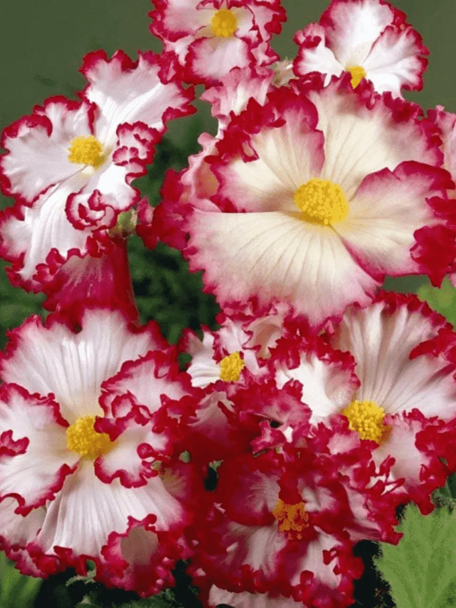 Бегония *Crispa* White/Red пленяет взор изысканной красотой своей листвы и элегантностью цветения. Листья крупные, сердцевидные, слегка волнистые по краям, словно кружевная кайма, придающая растению особую утончённость. Верхняя сторона листа украшена нежной бело-зелёной расцветкой, контрастирующей с ярко-красными прожилками и краями, создавая впечатление живописного полотна. Нижняя поверхность листовых пластин насыщенно-малиновая, бархатистая на ощупь, подчёркивая глубину цвета и придавая растению загадочный шарм. Цветки мелкие, белые, собраны в рыхлые соцветия, возвышающиеся над листьями, наполняя пространство лёгким ароматом и воздушностью. Рост компактный, кустистый, побеги прямостоячие, облиственные, образуют пышную крону, идеально подходящую для украшения интерьеров и оранжерей. Бегония предпочитает полутень и умеренный полив, радуя глаз своим декоративным видом круглый год.