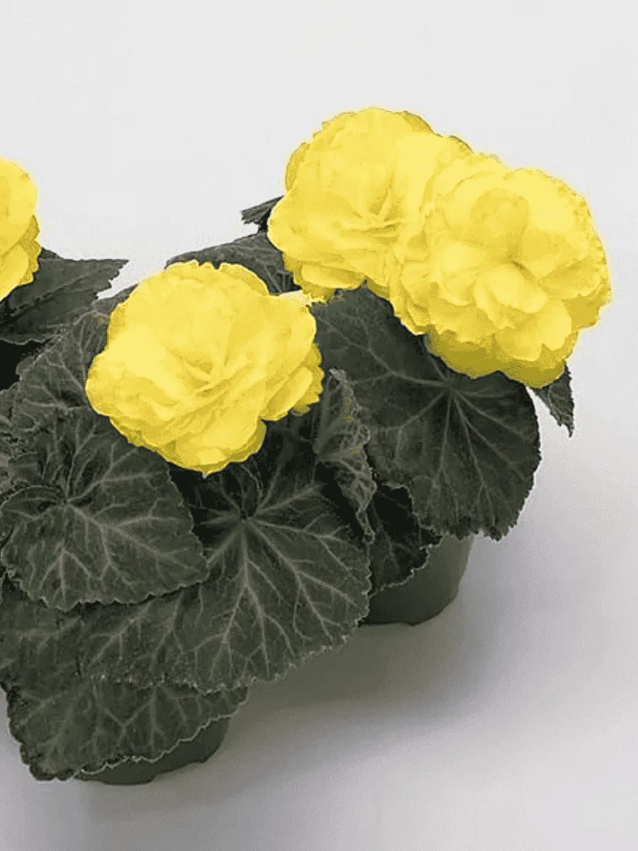Бегония клубневая сорта *Non Stop Mocca Yellow* пленяет взор изысканным сочетанием нежной зелени и ярких цветов. Её листья сердцевидной формы, слегка волнистые по краям, окрашены в насыщенный зелёный оттенок с лёгким серебристым отливом, создавая эффектную игру света и тени. Цветки крупные, махровые, собраны в пышные соцветия, поражают своей интенсивностью золотисто-жёлтого цвета, словно солнечные лучи застряли среди лепестков. Растение компактное, кустистое, образует аккуратные округлые очертания, идеально подходящие для контейнерного выращивания и оформления интерьеров. Обильное продолжительное цветение начинается ранней весной и продолжается до поздней осени, наполняя пространство теплом и радостью. Бегония предпочитает полутень и умеренную влажность почвы, легко адаптируется к домашним условиям, радуя глаз своим декоративным обликом круглый год.