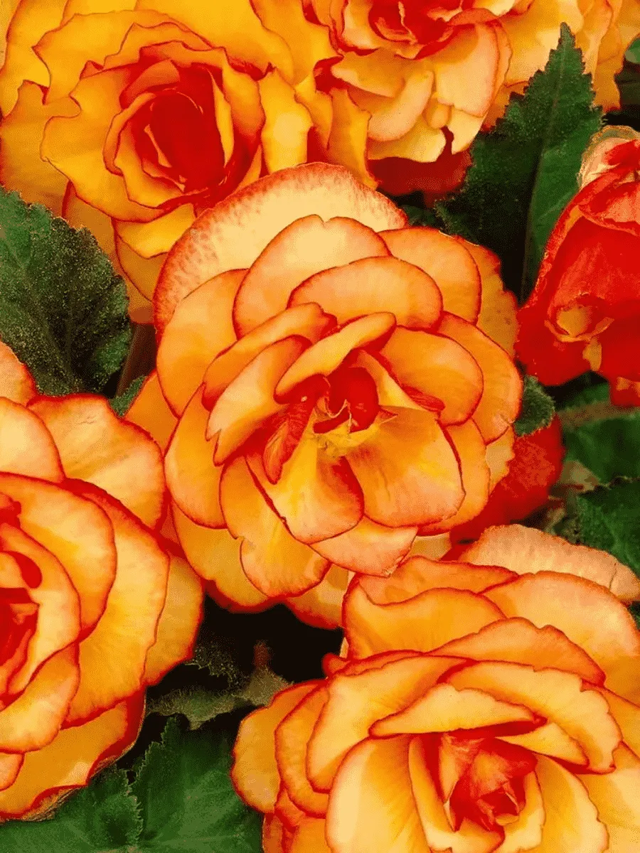 Бегония сорта *Picotee Yellow/Red* пленяет взор изысканным сочетанием нежности и яркости. Её листья сердцевидной формы, бархатистые на ощупь, словно покрытые тонким слоем шелковистого пуха, окрашены в насыщенный зелёный оттенок, подчёркивая природную гармонию и свежесть. Цветки этой бегонии поражают своей элегантностью: крупные бутоны раскрываются пышными венчиками, где золотисто-жёлтая середина окружена тонкой каймой глубокого красного цвета, создавая эффект утончённого кружева. Растение предпочитает полутень и влажную почву, демонстрируя свою неприхотливость и способность адаптироваться даже в условиях ограниченного пространства. Благодаря компактному росту и длительному периоду цветения бегония *Picotee Yellow/Red* становится украшением любого интерьера или сада, даря радость своим владельцам яркими красками и очарованием природы.