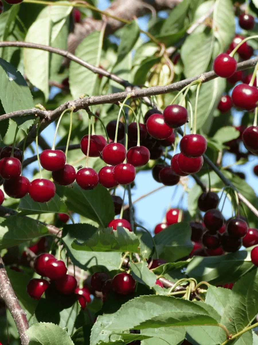Черешня Тютчевка — дерево средней высоты с раскидистой кроной, ветви которой устремляются вверх, словно стремясь коснуться небесной синевы. Листья овально-заострённые, гладко очерченные, насыщенно-зелёного цвета, слегка блестящие от солнечного света, придают растению особую элегантность и благородство облика. Цветёт обильно и пышно, покрываясь нежнейшими белыми цветами, собранными в небольшие кисти, источающими тонкий аромат весны. Бутоны раскрываются постепенно, создавая впечатление медленно распускающегося букета, украшающего садовый пейзаж. Растение предпочитает плодородную почву и солнечное местоположение, хорошо переносит умеренный климат, демонстрируя устойчивость к болезням и способность радовать глаз своей красотой долгие годы.