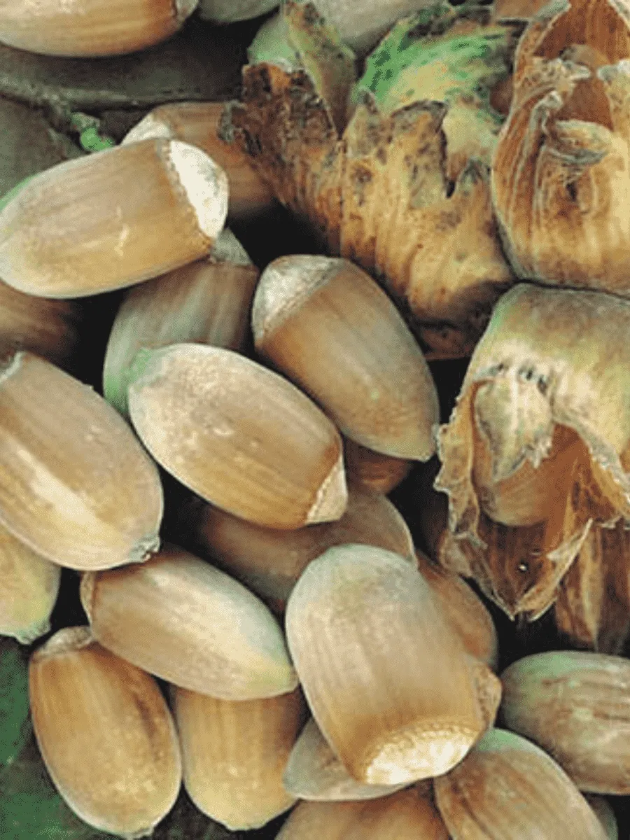 Фундук обыкновенный (*Corylus avellana* L.) — стройный кустарник семейства берёзовых (Betulaceae), достигающий высоты от двух до пяти метров, обладающий раскидистой кроной и гибкими ветвями, покрытыми гладкой серо-коричневой корой. Листья крупные, округло-сердцевидные, слегка морщинистые, ярко-зелёной окраски сверху и чуть светлее снизу, края листа украшены мелкими зубчиками, придающими растению особую декоративность. Цветёт фундук ранней весной, ещё до появления листвы, раскрывая длинные золотисто-жёлтые мужские серёжки и малозаметные женские цветки, состоящие лишь из крошечных красных рыльц, выглядывающих из почек. Растение широко распространено в умеренной зоне Европы и Азии, предпочитает влажные плодородные почвы лесных массивов, тенистые овраги и берега рек, где образует густые заросли, радуя глаз своей живописностью и создавая уютную атмосферу природного уголка.