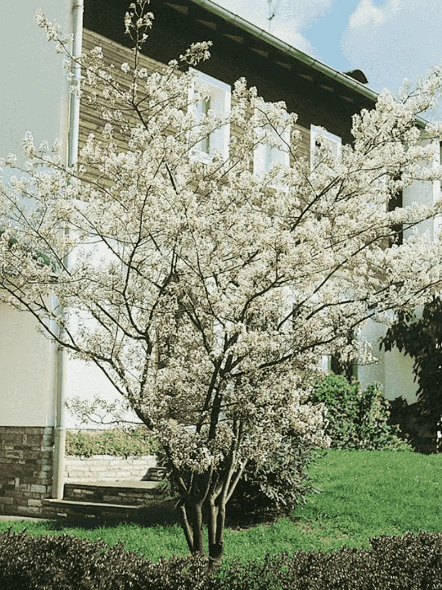 Ирга канадская *Prince William* представляет собой живописную листопадную кустарниковую породу, достигающую высоты до трёх метров, обладающую густой округлой кроной и прямостоячими побегами серо-коричневого цвета с лёгким блеском. Листья крупные, овально-ланцетной формы, слегка волнистые по краям, сверху тёмно-зелёные, снизу чуть светлее, осенью окрашиваются в яркие оттенки оранжевого и красного цветов, создавая эффектное зрелище. Цветёт обильно белыми ароматными цветами, собранными в густые кисти длиной около десяти сантиметров, украшая сад нежностью своего цветения ранней весной. Растение отличается устойчивостью к холодам и неприхотливостью, прекрасно адаптируется к различным почвенным условиям, быстро разрастается и легко переносит стрижку, благодаря чему широко используется в ландшафтном дизайне для живых изгородей и декоративных групповых посадок.